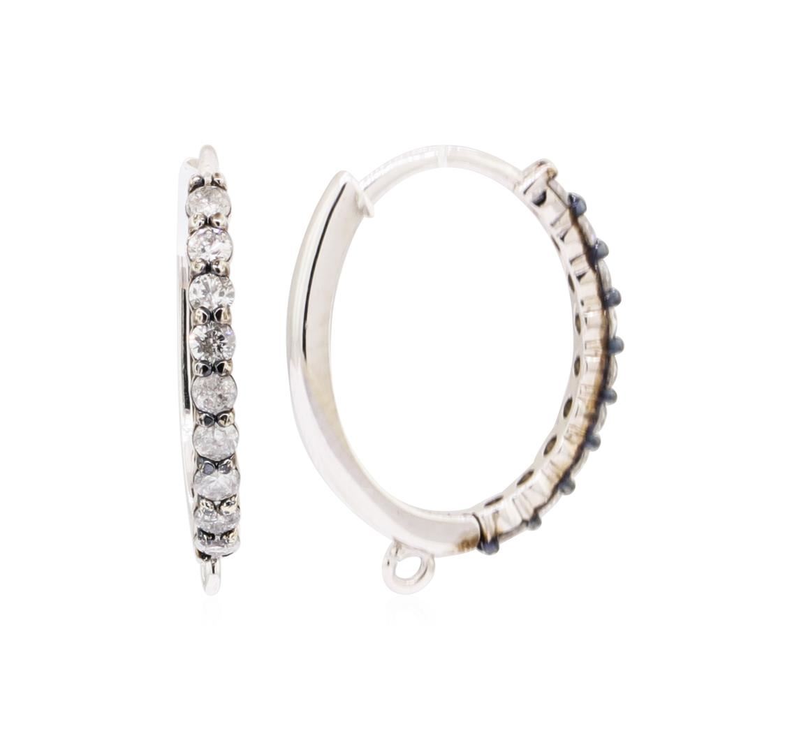 One pair of oval hoop earrings featuring: 14KT white gold weighing 2.3 grams containing diamonds weighing 0.45ctw. The prongs for the diamonds have been plated with black rhodium.