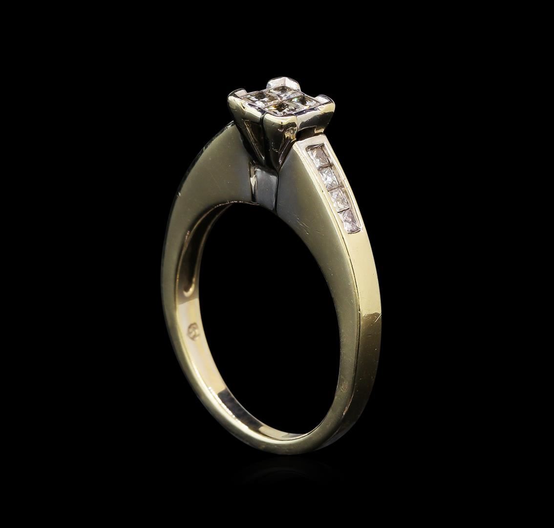 One electronically tested 14KT white gold ladies cast diamond unity ring with a bright polish finish. The ring features an invisible set diamond cluster supported by diamond set shoulders, completed by a one and one-half millimeter wide band. Identified with markings of "14K". Condition is good. Containing: Four invisible set princess cut diamonds, measuring 2.10 x 2.00 x 1.50mm (depth est.) approximate total weight of 4 Stones = 0.25ct. Graded in the setting. Clarity: SI-2 to I-1. Color: I - J Eight channel set princess cut diamonds, measuring 1.70 x 1.50 x 1.13mm (depth est.) approximate total weight of 8 Stones = 0.20ct. Graded in the setting. Clarity: SI-2 to I-1. Color: I - K. Total Weight of Diamonds 0.45ct. Total Weight of Ring 3.80 grams. AIG Appraised at $1,454.42.