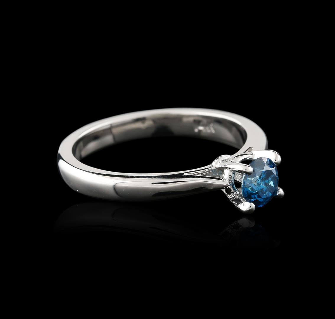 One electronically tested 14KT white gold ladies cast diamond solitaire ring with a cathedral shank with a bright polish finish. Identified with markings of "14K". Condition is new. Containing: One prong set round brilliant cut diamond, measuring 4.80 - 4.80 x 3.12mm (depth est.) exact weight 0.47ct. Clarity: I-1, Cut is Good. Color of the stone has been treated. Diamonds are graded in the mounting, unless otherwise stated. Total Weight of Diamonds 0.47ct. Total Weight of Solitaire Ring 3.40 grams. GGL Appraised at $1,335.00.