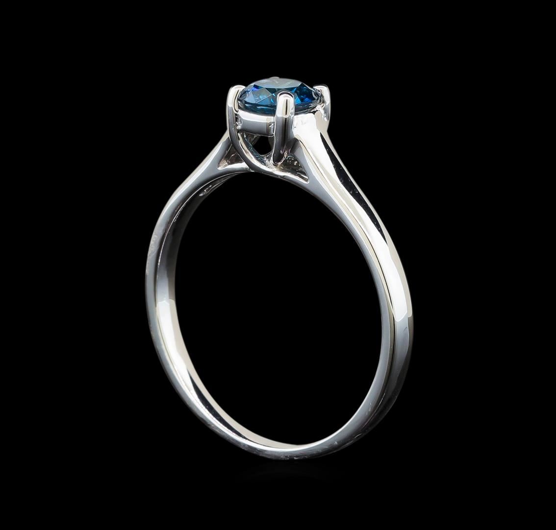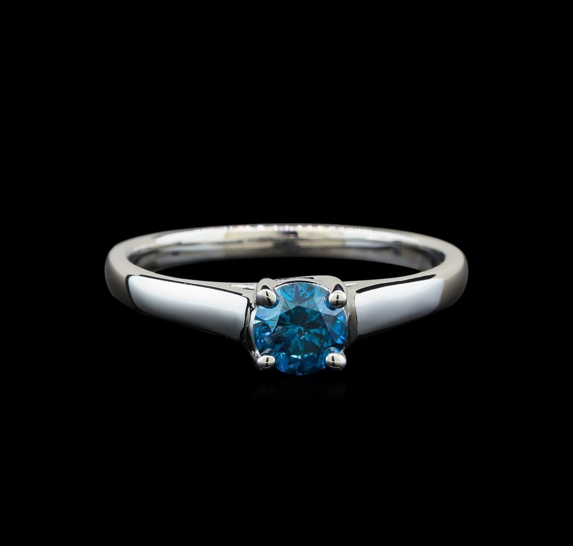 One electronically tested 14KT white gold ladies cast diamond solitaire ring with a cathedral shank with a bright polish finish. Identified with markings of "14K". Condition is new. Containing: One prong set round brilliant cut diamond, measuring 5.00 - 5.00 x 3.25mm (depth est.) exact weight 0.47ct. Clarity: I-1, Cut is Good. Color of the stone has been treated. Diamonds are graded in the mounting, unless otherwise stated. Total Weight of Diamonds 0.47ct. Total Weight of Solitaire Ring 2.10 grams. GGL Appraised at $1,150.00.