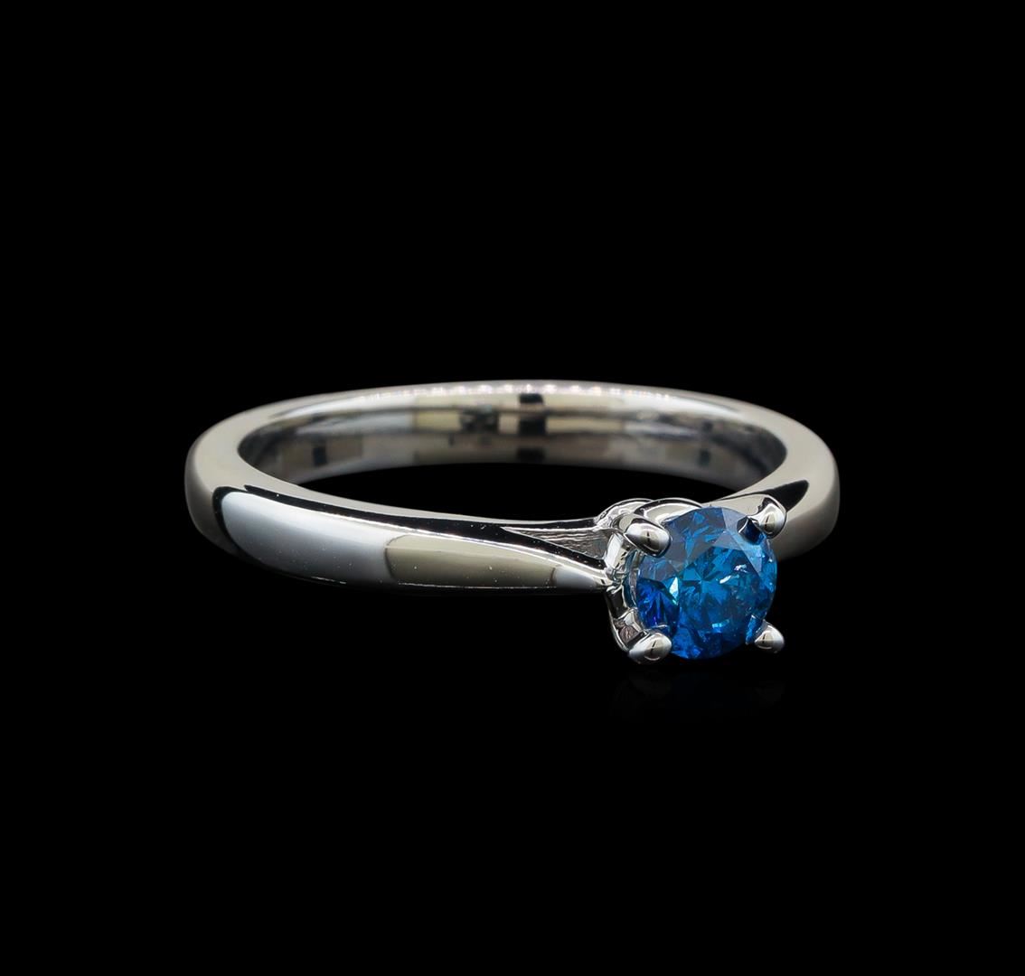 One electronically tested 14KT white gold ladies cast diamond solitaire ring with a cathedral shank with a bright polish finish. Identified with markings of "14K". Condition is new. Containing: One prong set round brilliant cut diamond, measuring 4.80 - 4.80 x 3.12mm (depth est.) exact weight 0.47ct. Clarity: I-1, Cut is Good. Color of the stone has been treated. Diamonds are graded in the mounting, unless otherwise stated. Total Weight of Diamonds 0.47ct. Total Weight of Solitaire Ring 3.40 grams. GGL Appraised at $1,335.00.