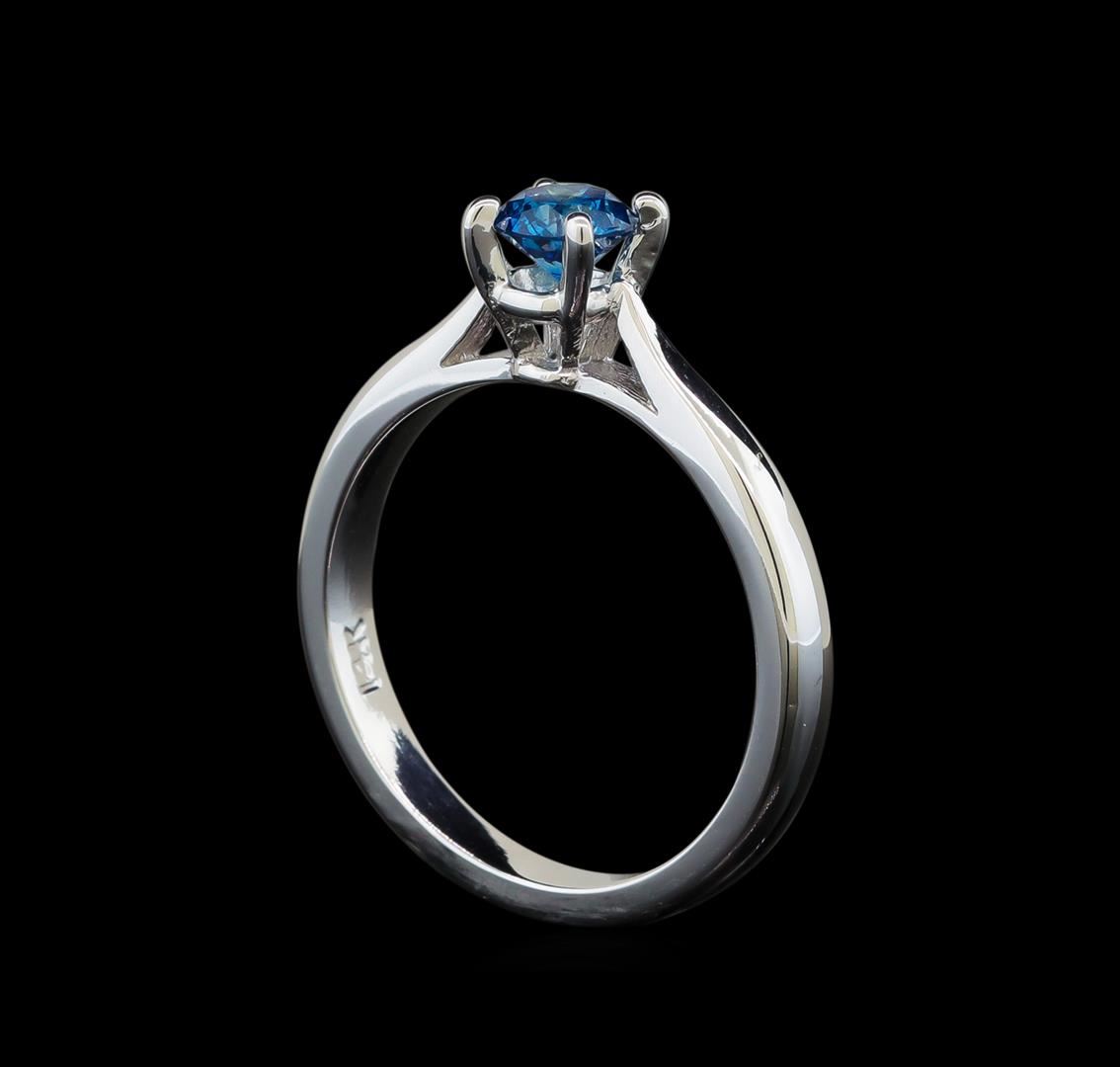 One electronically tested 14KT white gold ladies cast diamond solitaire ring with a cathedral shank with a bright polish finish. Identified with markings of "14K". Condition is new. Containing: One prong set round brilliant cut diamond, measuring 4.80 - 4.80 x 3.12mm (depth est.) exact weight 0.47ct. Clarity: I-1, Cut is Good. Color of the stone has been treated. Diamonds are graded in the mounting, unless otherwise stated. Total Weight of Diamonds 0.47ct. Total Weight of Solitaire Ring 3.40 grams. GGL Appraised at $1,335.00.