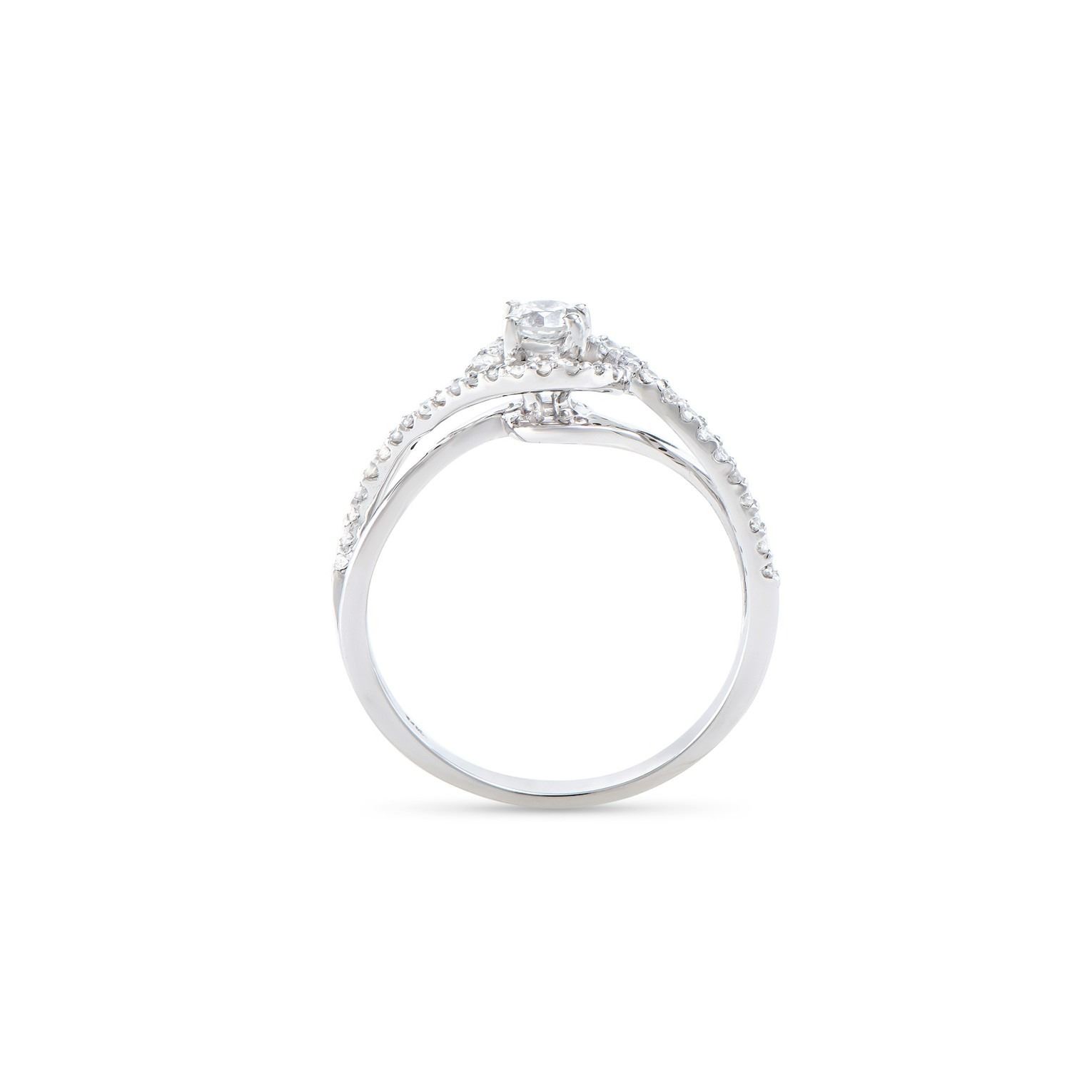 (1) round Diamond with a total weight of 0.22cts with a color of H-I and clarity of I1-I2. (38) round Diamonds with a total weight of 0.24cts with a color of H-I and clarity of I1-I2. Total weight of this ring is 2.5 grams. Ring size is 7.5.