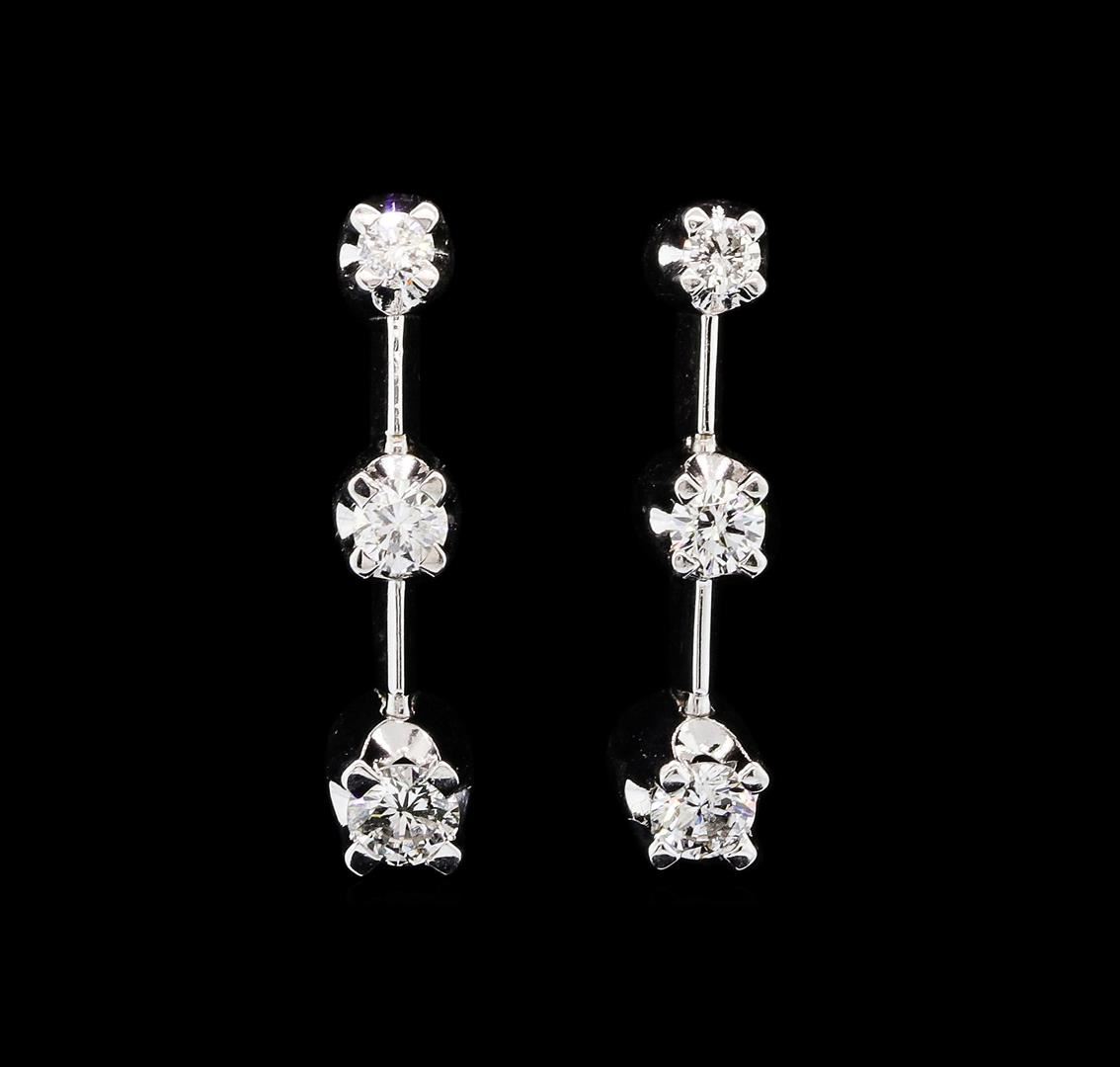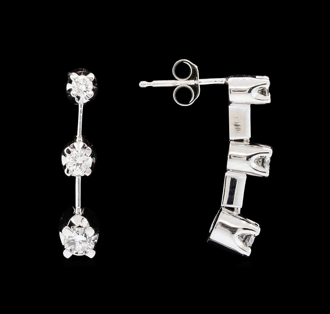 One pair of lady's past, present, and future dangle earrings featuring: 14KT white gold weighing 3.0 grams containing diamonds weighing 0.50ctw.