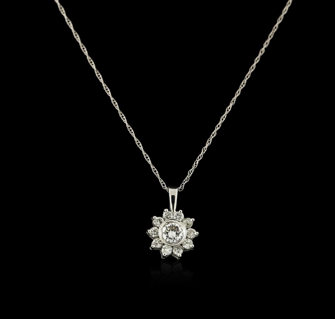 One pendant with chain featuring: 14KT white gold weighing 1.40 grams containing 11 diamonds with a total weight of 0.50ct.