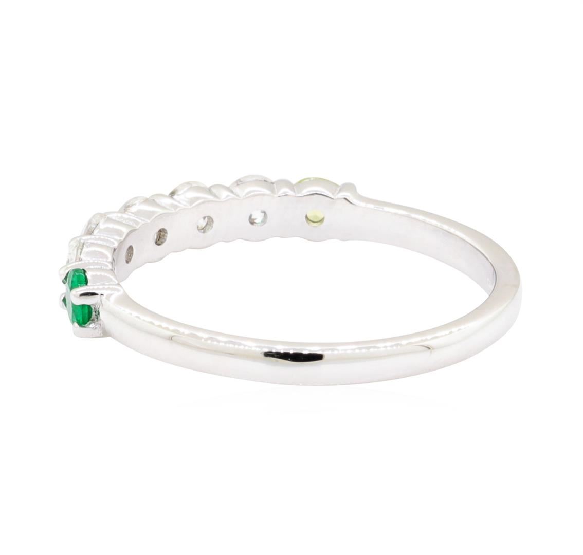 14KT White Gold 0.50 ctw Diamond, Peridot and Emerald Ring