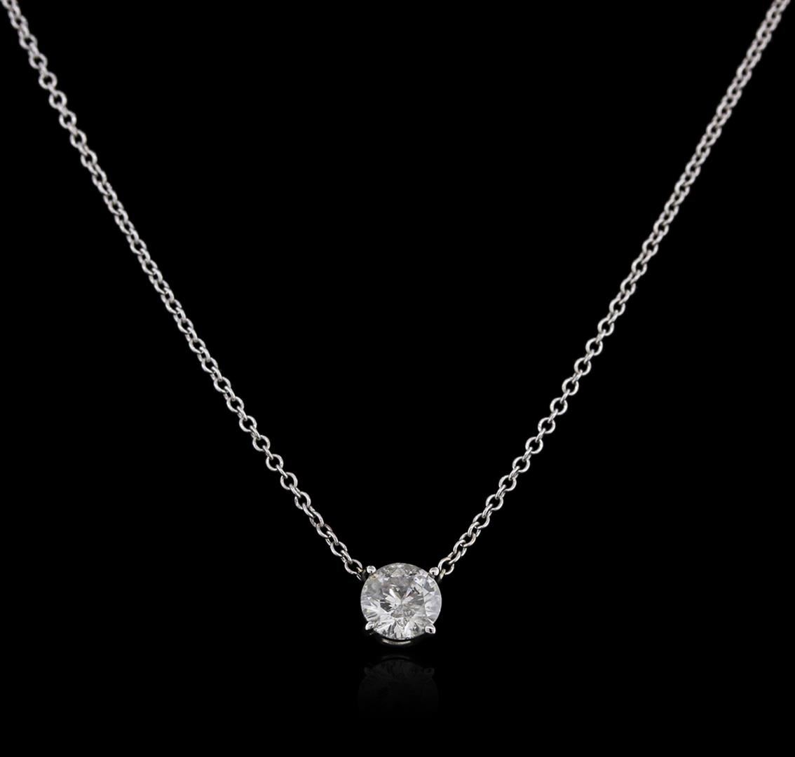 One solitaire pendant with chain featuring: 14KT white gold weighing 1.30 grams containing one diamond with a total weight of 0.50ct.