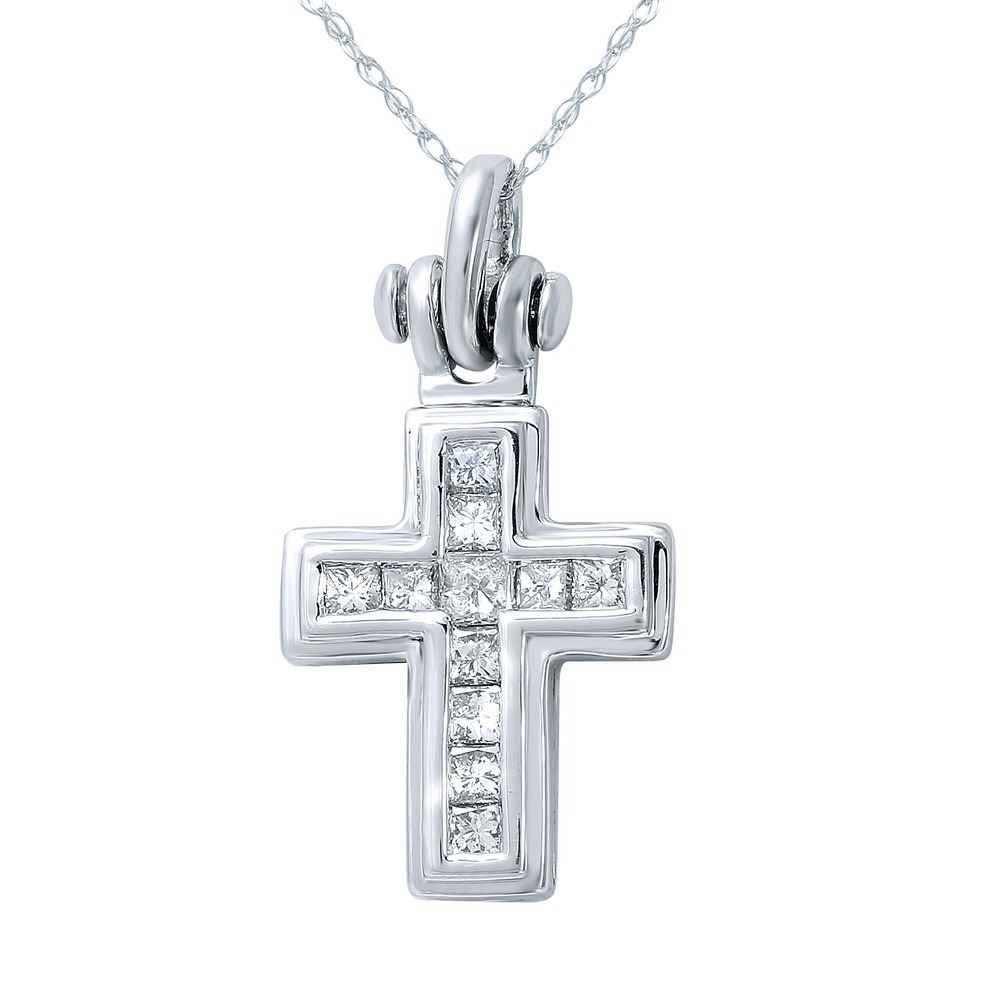 One 14KT White Gold 0.50ctw Diamond Pendant with Chain. (11) round Diamonds with a total weight of 0.50cts with a color of I and clarity of I-1. Total weight of this pendant with chain is 3.84 grams.