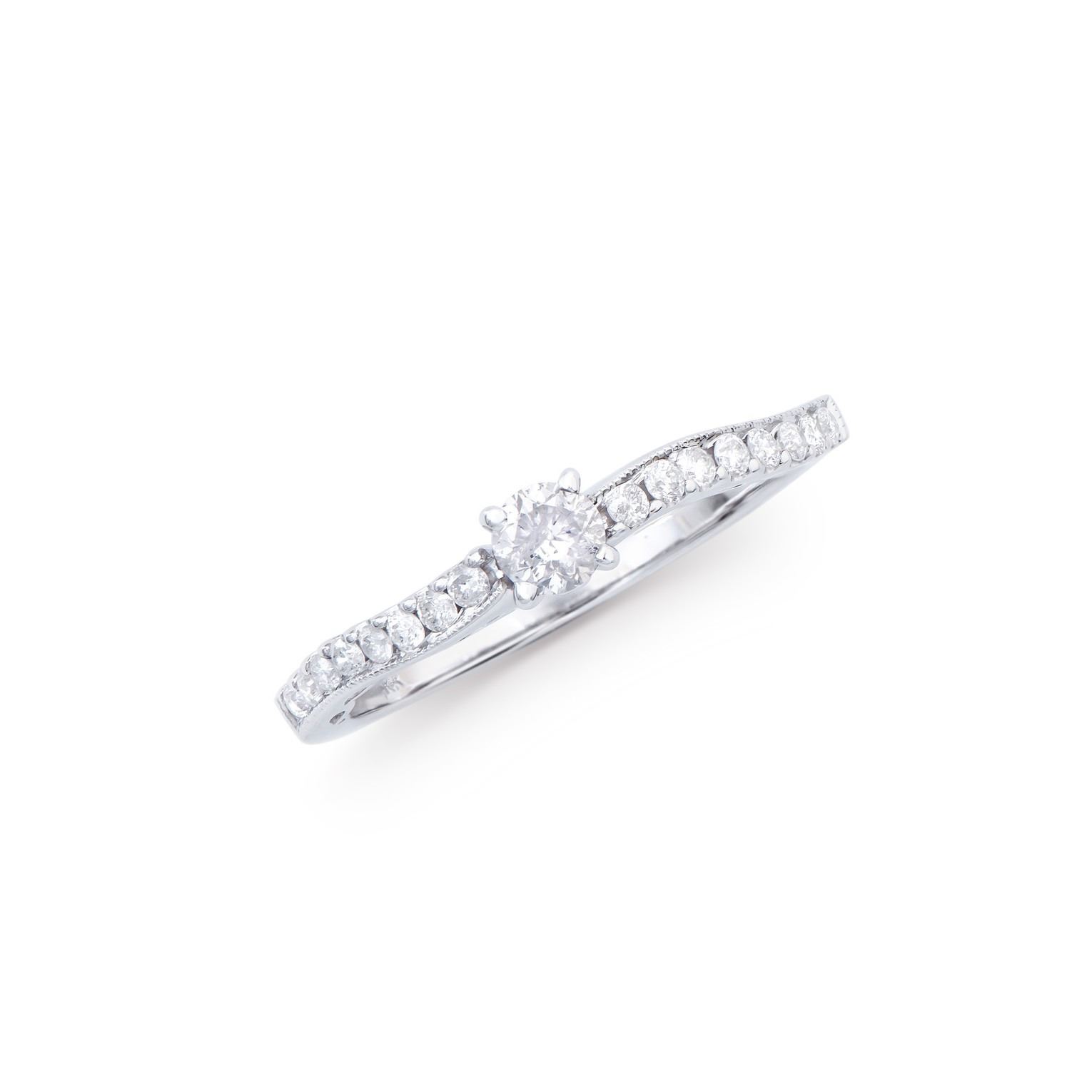 (1) round Diamond with a total weight of 0.22cts with a color of H-I and clarity of I1-I2. (16) round Diamonds with a total weight of 0.28cts with a color of H-I and clarity of I1-I2. Total weight of this ring is 2.1 grams. Ring size is 7.5.