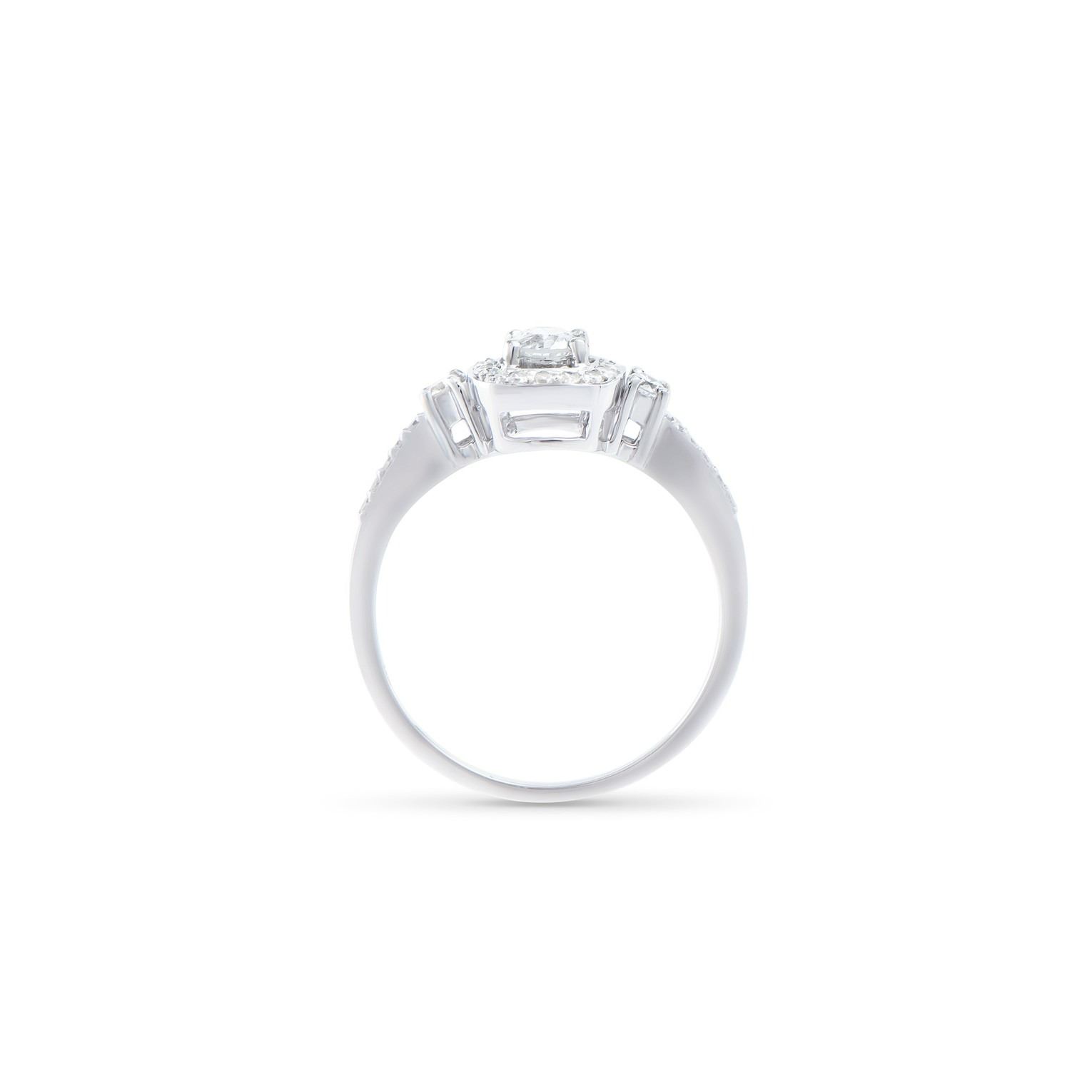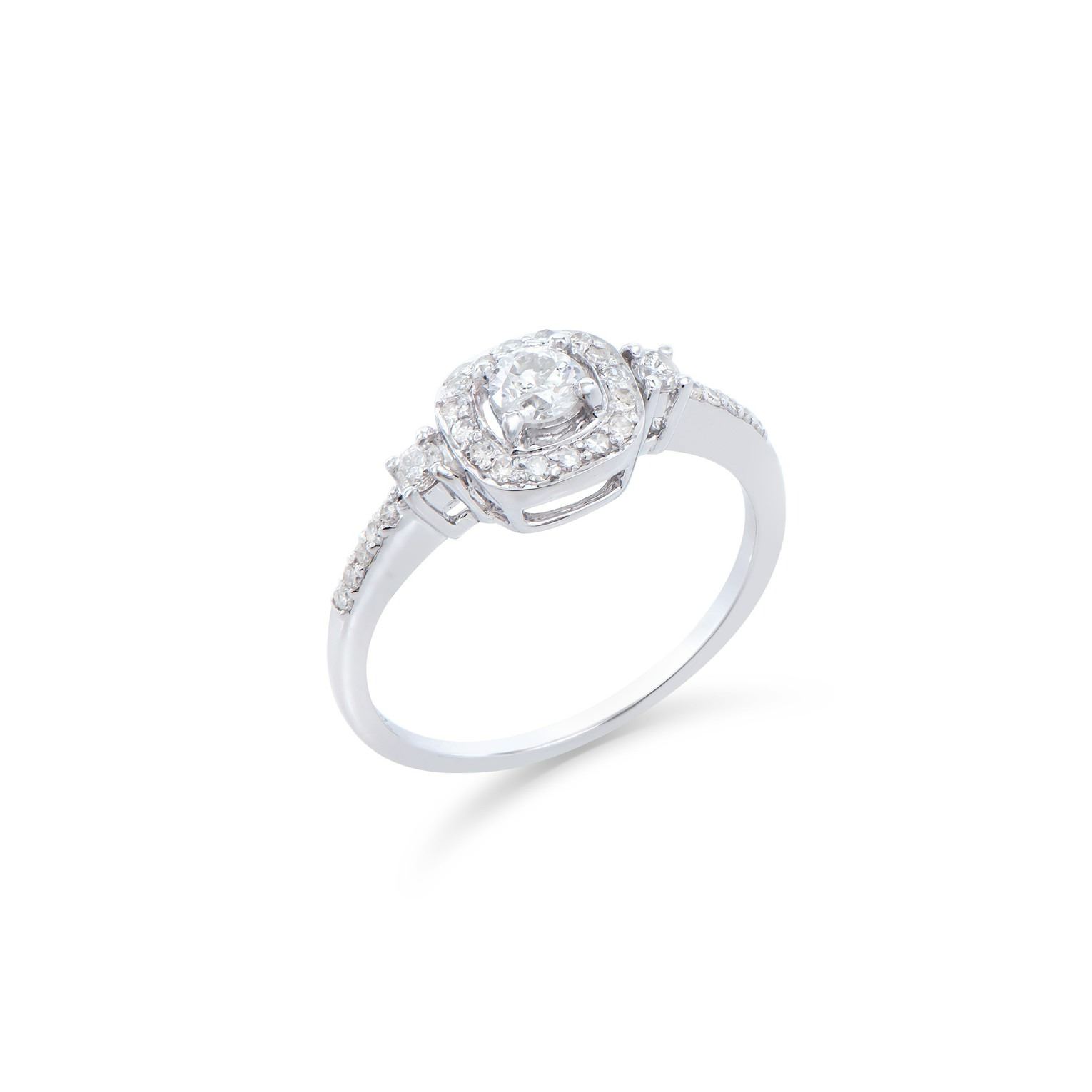 (1) round Diamond with a total weight of 0.22cts with a color of H-I and clarity of I1-I2. (2) round Diamonds with a total weight of 0.10cts with a color of H-I and clarity of I1-I2. (22) round Diamonds with a total weight of 0.18cts with a color of H-I and clarity of I1-I2. Total weight of this ring is 2.1 grams. Ring size is 7.5.