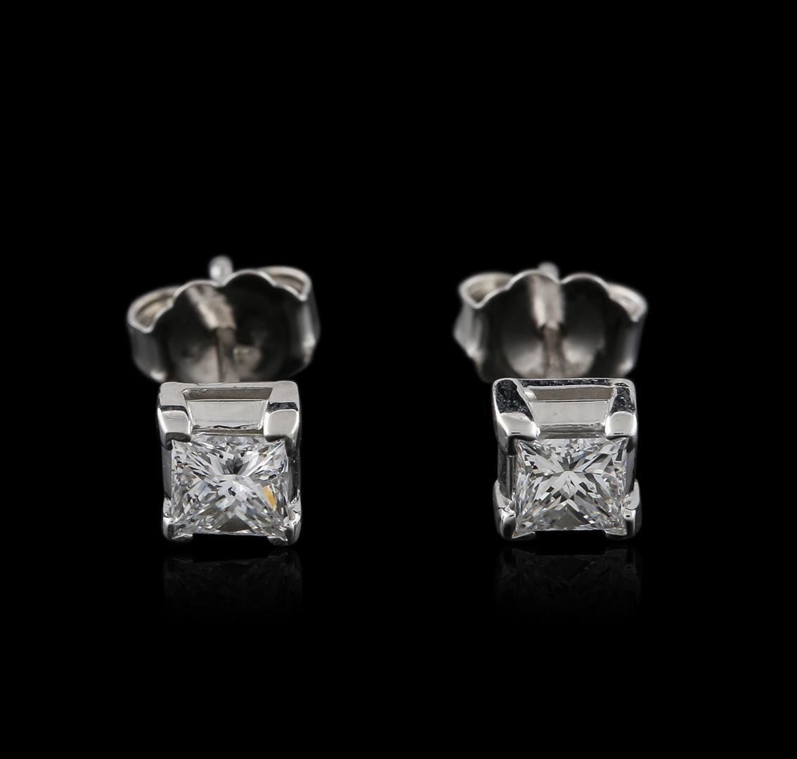 One pair of stud earrings featuring: 14KT white gold weighing 1.29 grams containing two diamonds with a total weight of 0.50ct.