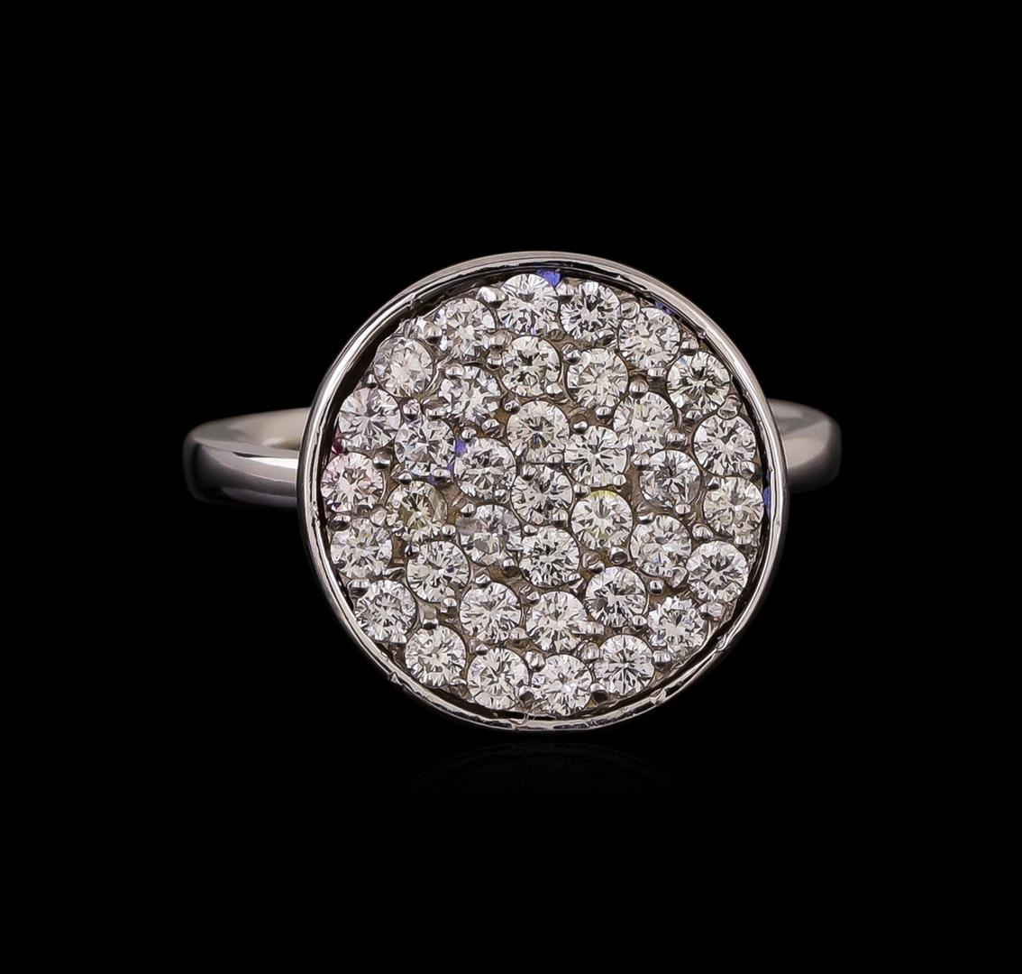 One electronically tested 14KT white gold ladies cast diamond ring with a bright polish finish. Identified with markings of "585". Condition is new. Containing: Thirty-Four prong set round brilliant cut diamonds, measuring 1.60 - 1.60 x 0.96mm (depth est.) approximate total weight of 34 Stones = 0.51ct. Clarity: SI-1 to SI-2. Color: I - J, Cut is Good. All diamonds are graded in the mounting, unless otherwise stated. Total Weight of Diamonds 0.51ct. Total Weight of Ring 5.30 grams. GGL Appraised at $2,985.00.
