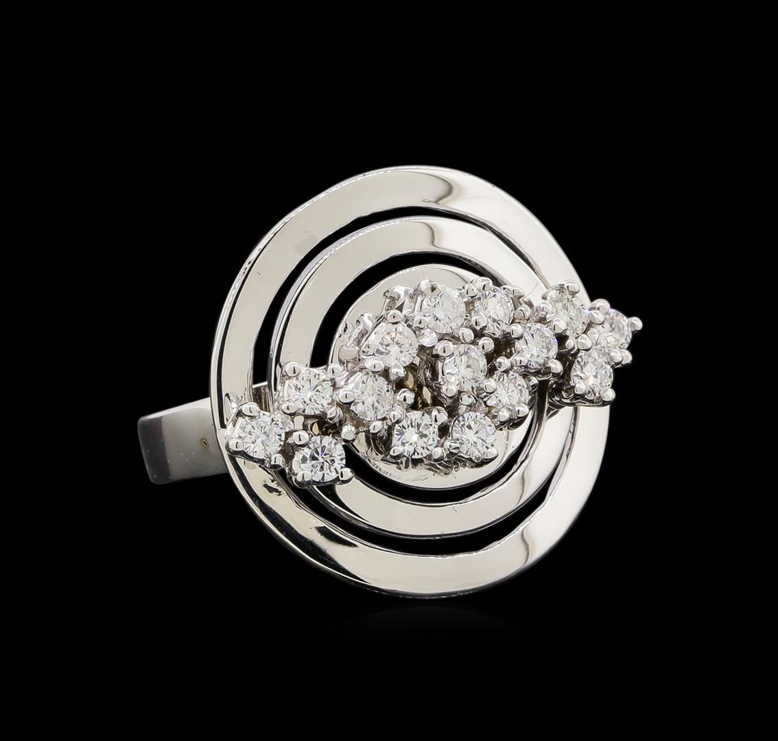 One electronically tested 14KT white gold ladies cast diamond ring with a bright polish finish. Identified with markings of "14K". Condition is new. Containing: Fifteen prong set round brilliant cut diamonds, measuring 2.20 - 2.00 x 1.26mm (depth est.) approximate total weight of 15 Stones = 0.51ct. Clarity: SI-1 to SI-2. Color: J - K. All diamonds are graded in the mounting, unless otherwise stated. Total Weight of Diamonds 0.51ct. Total Weight of Ring 10.60 grams. GGL Appraised at $3,425.00.