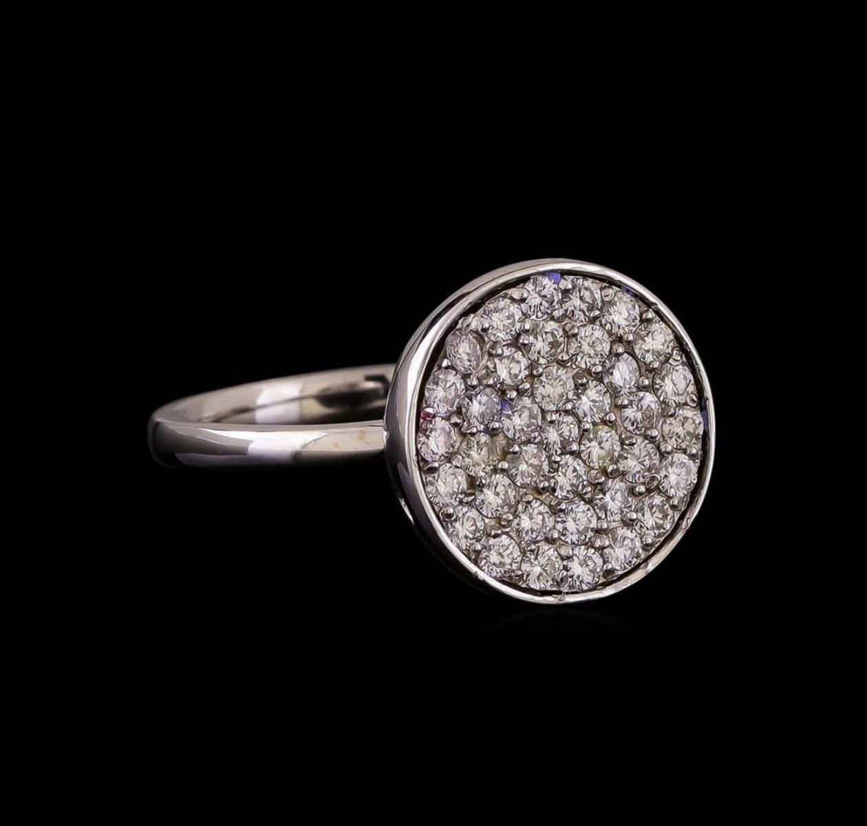 One electronically tested 14KT white gold ladies cast diamond ring with a bright polish finish. Identified with markings of "585". Condition is new. Containing: Thirty-Four prong set round brilliant cut diamonds, measuring 1.60 - 1.60 x 0.96mm (depth est.) approximate total weight of 34 Stones = 0.51ct. Clarity: SI-1 to SI-2. Color: I - J, Cut is Good. All diamonds are graded in the mounting, unless otherwise stated. Total Weight of Diamonds 0.51ct. Total Weight of Ring 5.30 grams. GGL Appraised.