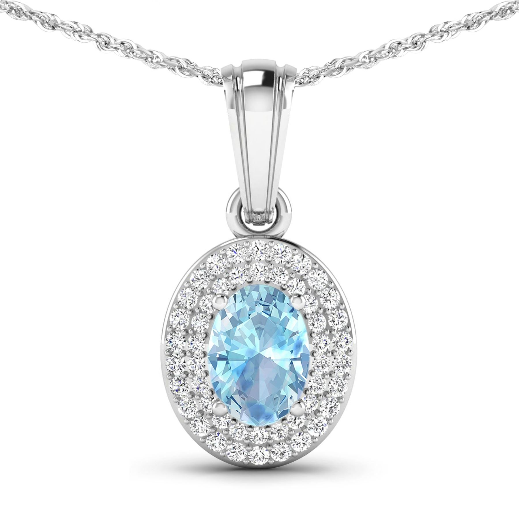 Aquamarine Oval 7x5mm - 1Pc + White Diamond F/C Round 0.90mm - 48Pcs (I1-I2/I color) Total weight of gemstone is 0.51cts. Total Diamond weight is 0.16cts. Total weight of this pendant is 1.39 grams.