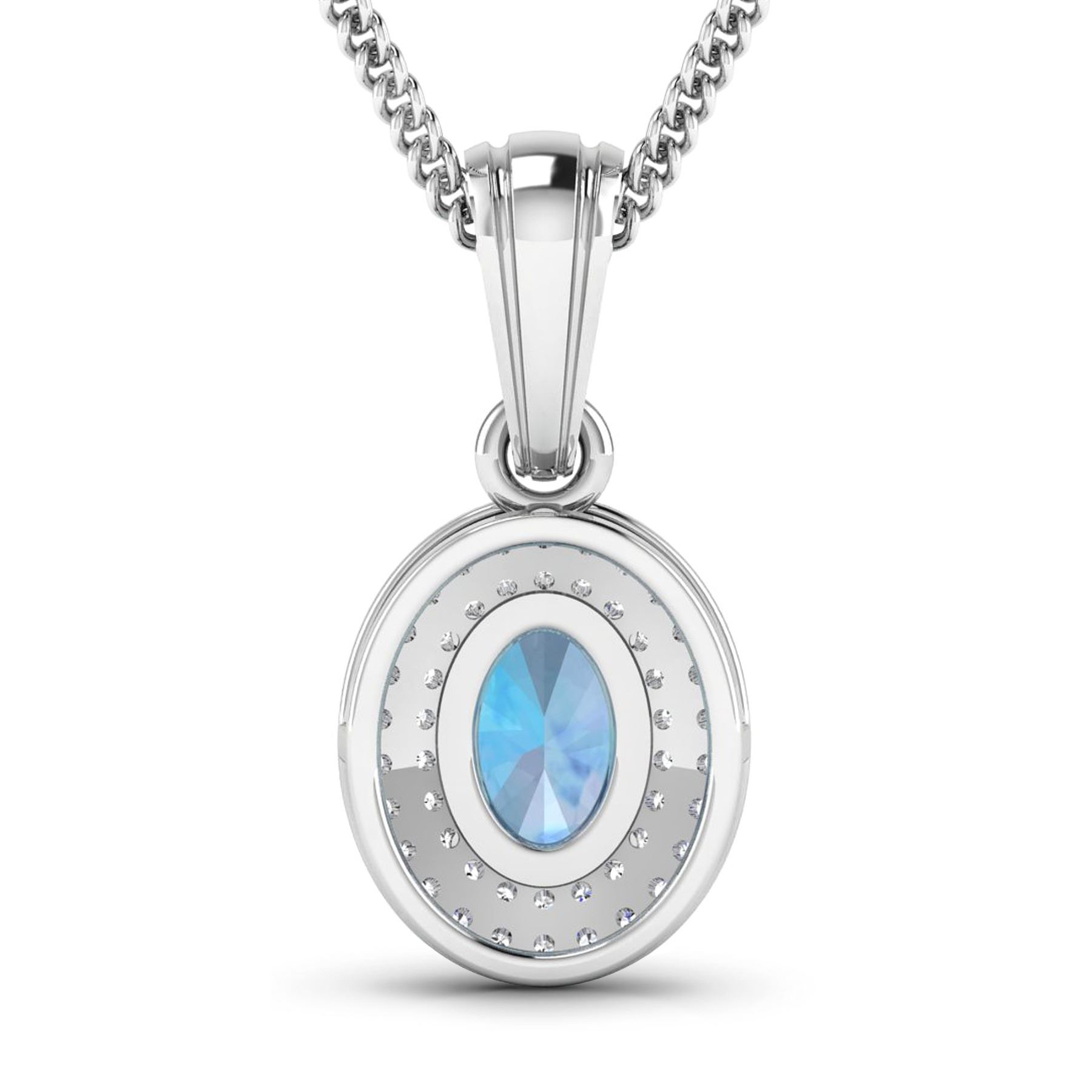Aquamarine Oval 7x5mm - 1Pc + White Diamond F/C Round 0.90mm - 48Pcs (I1-I2/I color) Total weight of gemstone is 0.51cts. Total Diamond weight is 0.16cts. Total weight of this pendant is 1.39 grams.