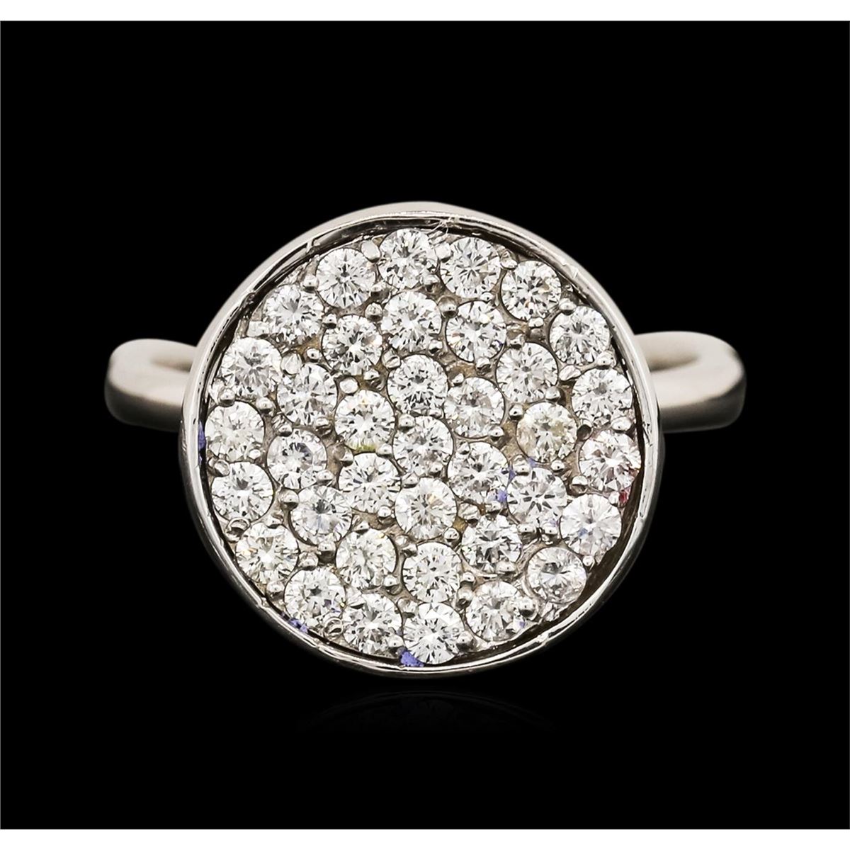 One electronically tested 14KT white gold ladies cast diamond ring with a bright polish finish. Identified with markings of "585". Condition is new. Containing: Thirty-Four prong set round brilliant cut diamonds, measuring 1.60 - 1.60 x 0.96mm (depth est.) approximate total weight of 34 Stones = 0.51ct. Clarity: SI-1 to SI-2. Color: I - J, Cut is Good. All diamonds are graded in the mounting, unless otherwise stated. Total Weight of Diamonds 0.51ct. Total Weight of Ring 5.30 grams. GGL Appraised at $2,985.00.