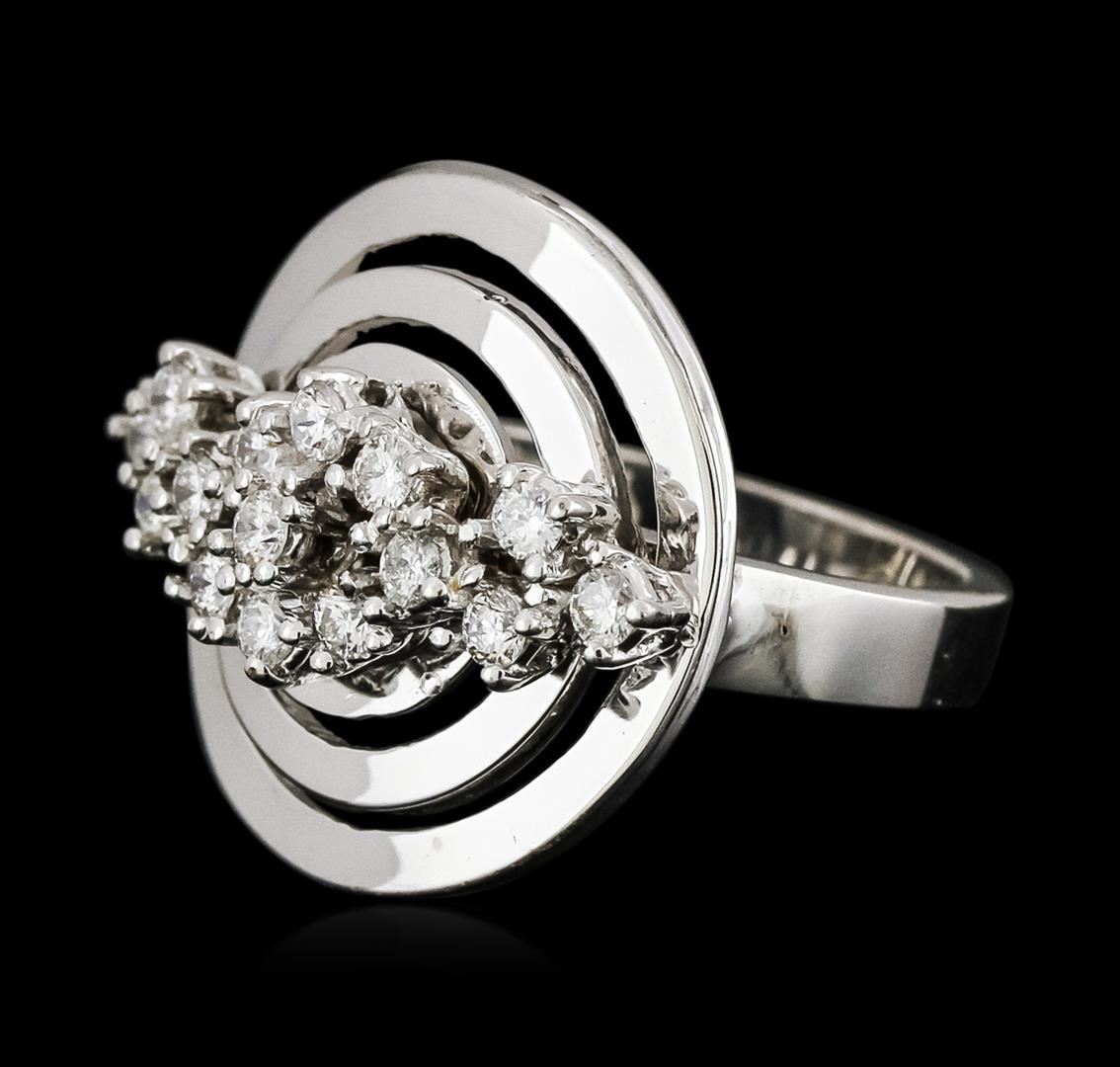 One electronically tested 14KT white gold ladies cast diamond ring with a bright polish finish. Identified with markings of "14K". Condition is new. Containing: Fifteen prong set round brilliant cut diamonds, measuring 2.20 - 2.00 x 1.26mm (depth est.) approximate total weight of 15 Stones = 0.51ct. Clarity: SI-1 to SI-2. Color: J - K. All diamonds are graded in the mounting, unless otherwise stated. Total Weight of Diamonds 0.51ct. Total Weight of Ring 10.60 grams. GGL Appraised at $3,425.00.