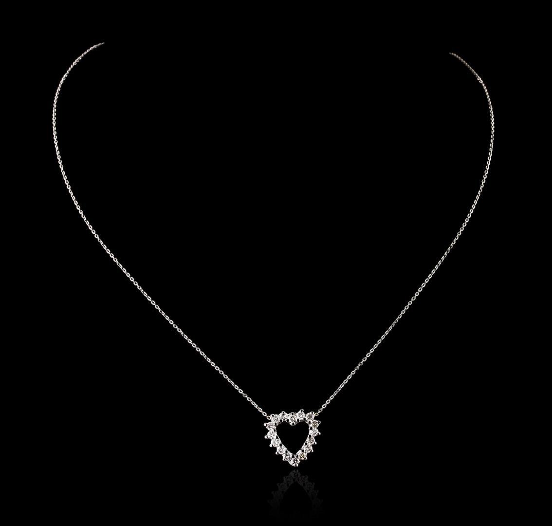 One heart pendant with chain featuring: 14KT white gold weighing 2.60 grams containing diamonds with a total weight of 0.52ct.