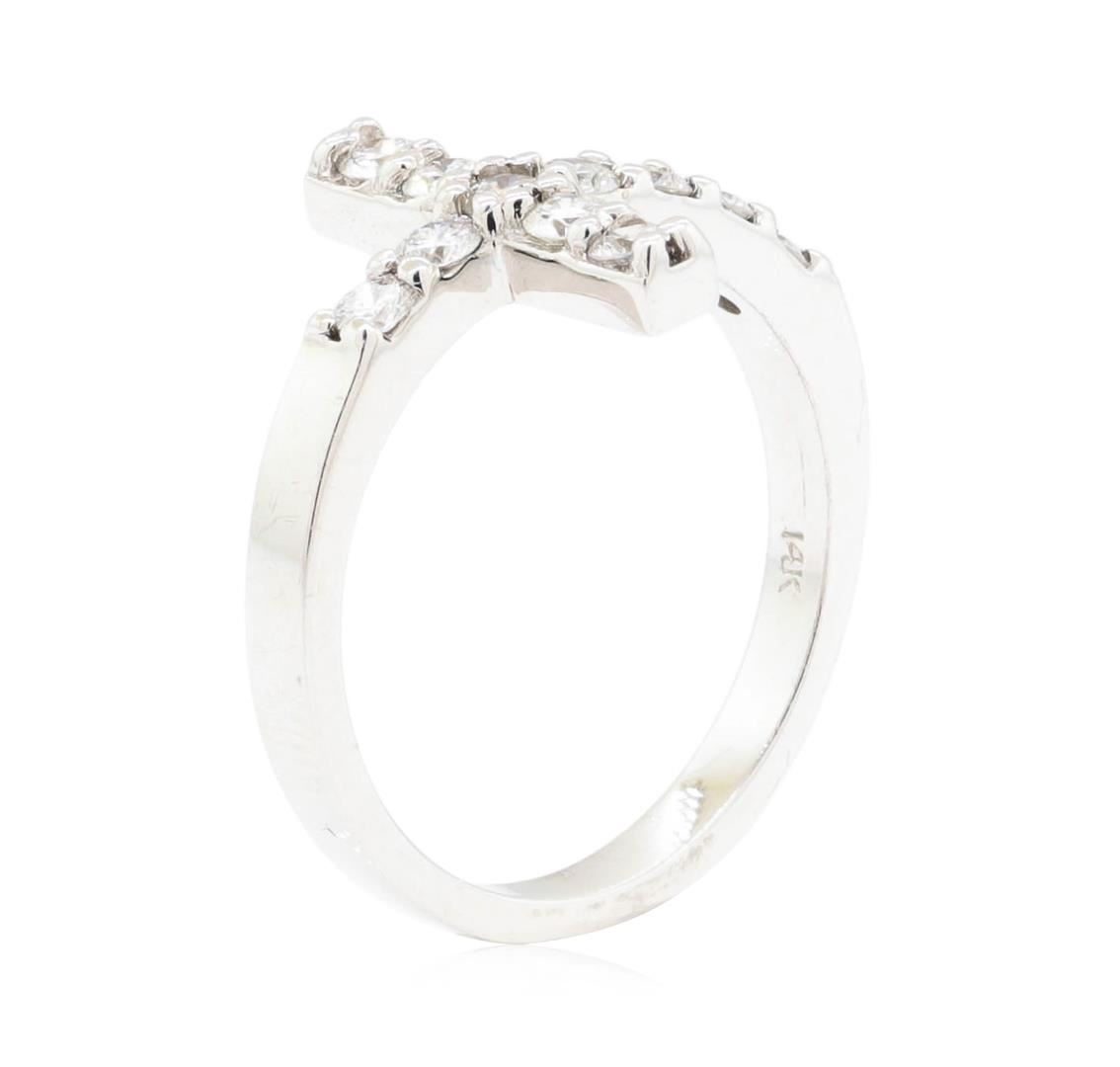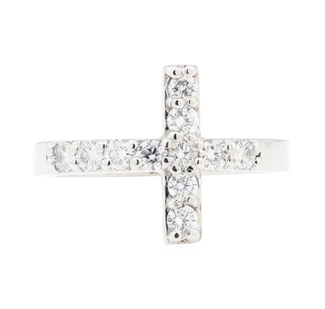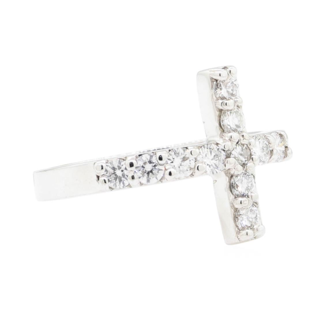 One cross ring featuring: 14KT white gold weighing 1.6 grams containing diamonds weighing 0.53ctw. The ring is a size 6.5.