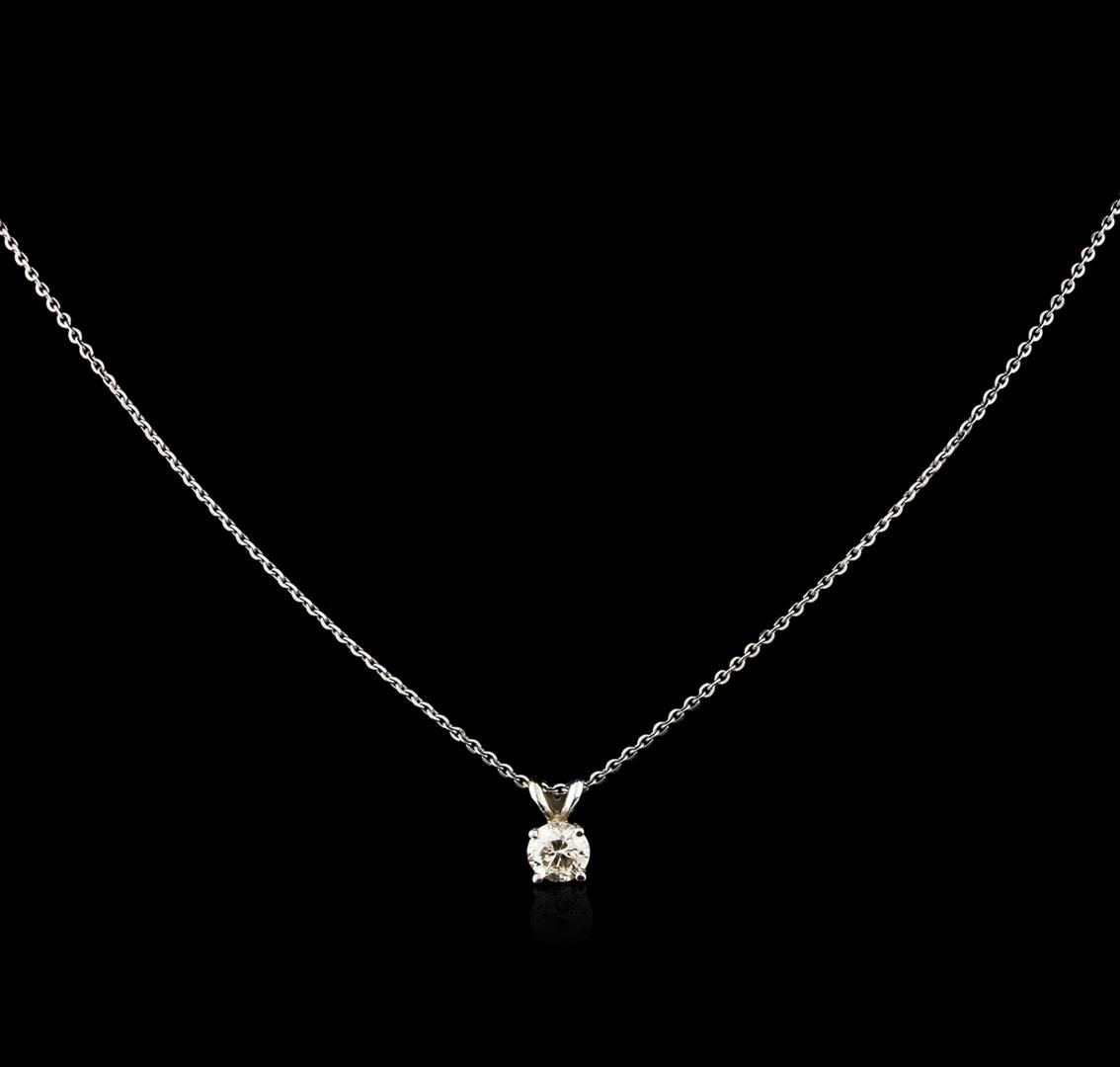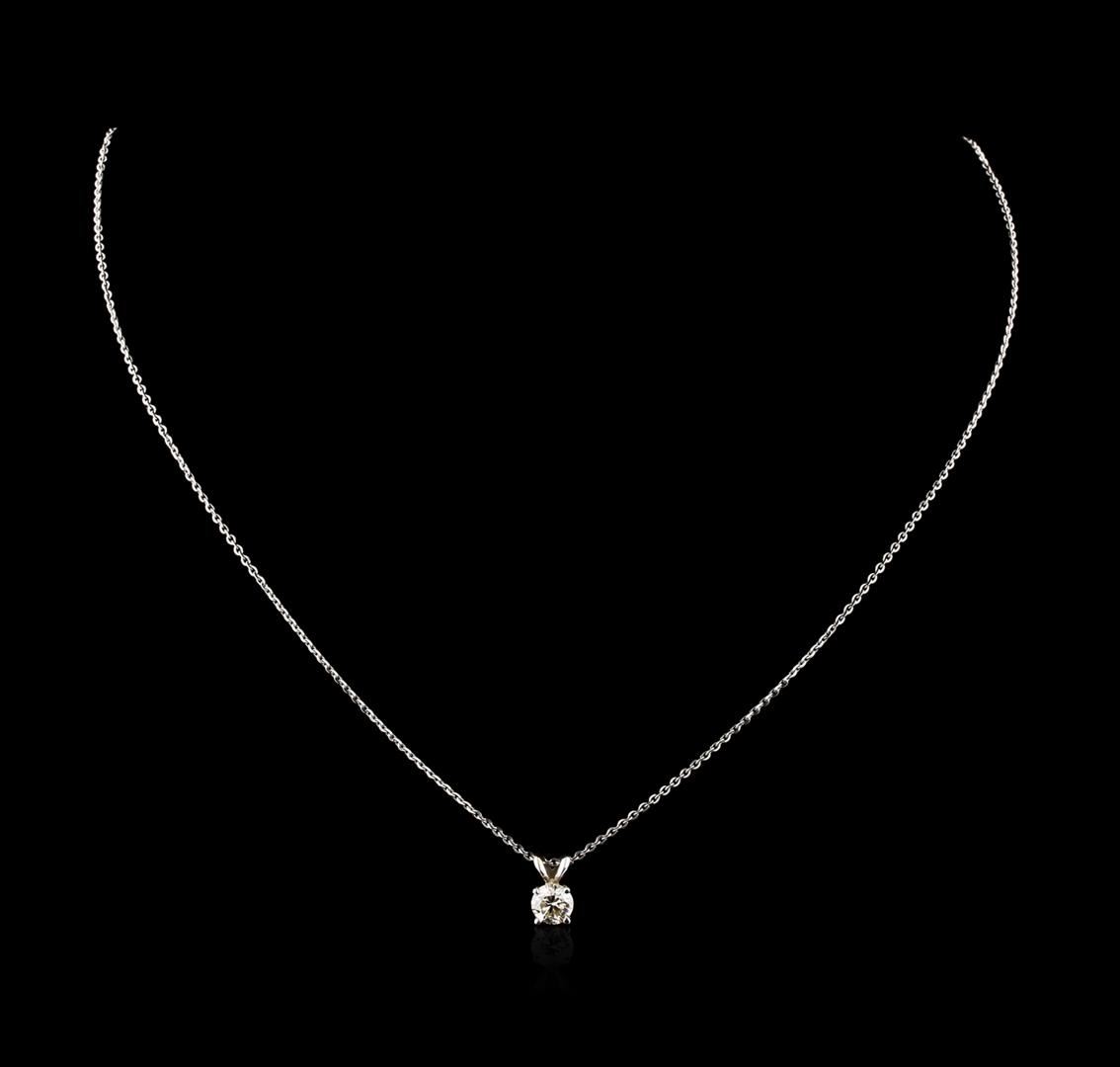 One solitaire pendant with chain featuring: 14KT white gold weighing 2.00 grams containing one diamond center stone with a total weight of 0.56ct.