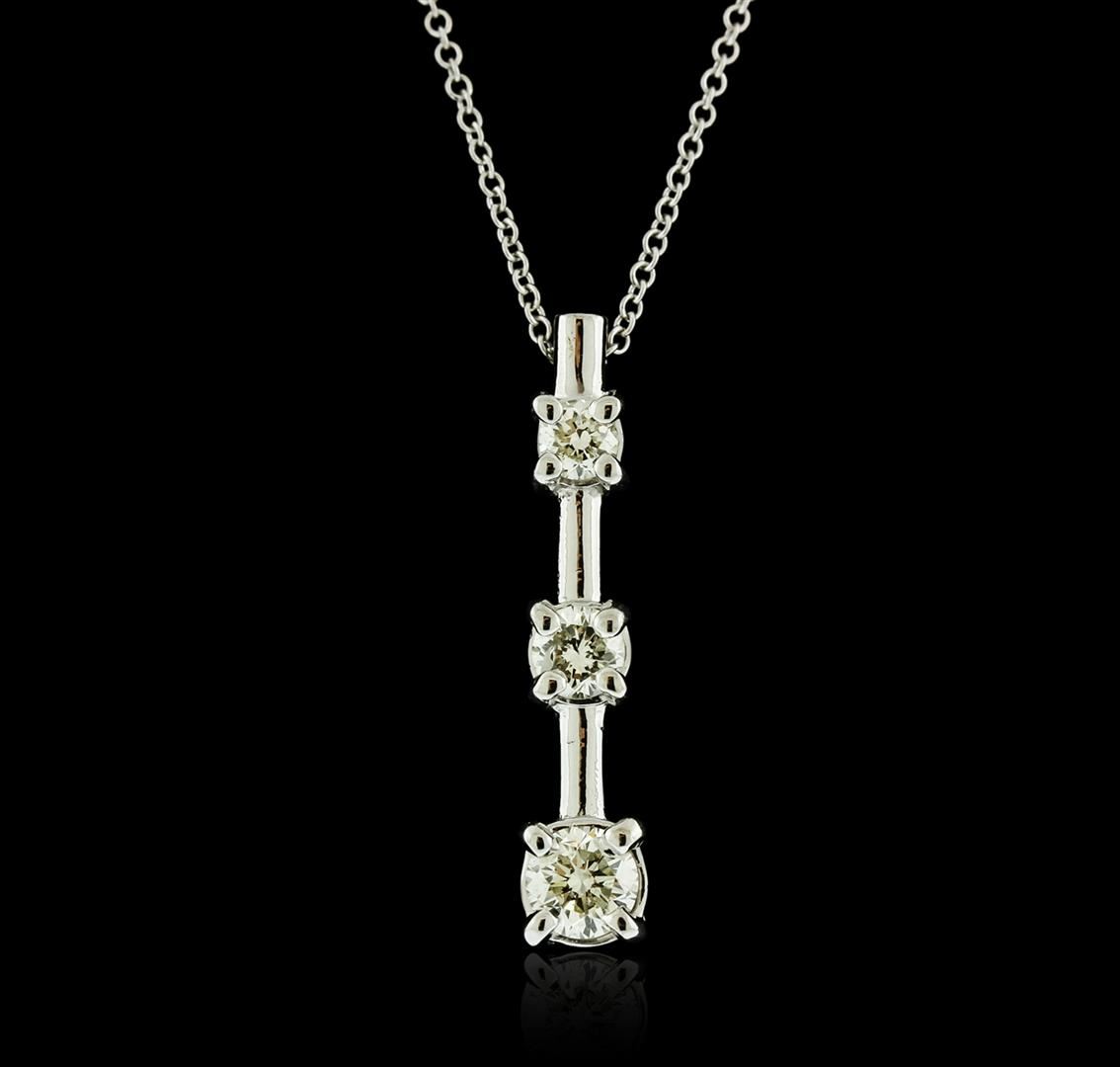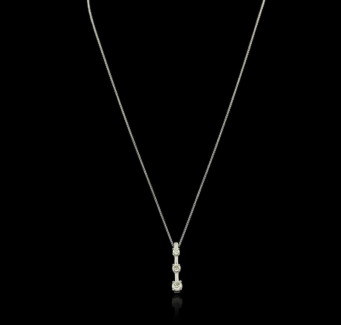 One pendant with chain featuring: 14KT white gold weighing 3.50 grams containing diamonds with a total weight of 0.56ct.