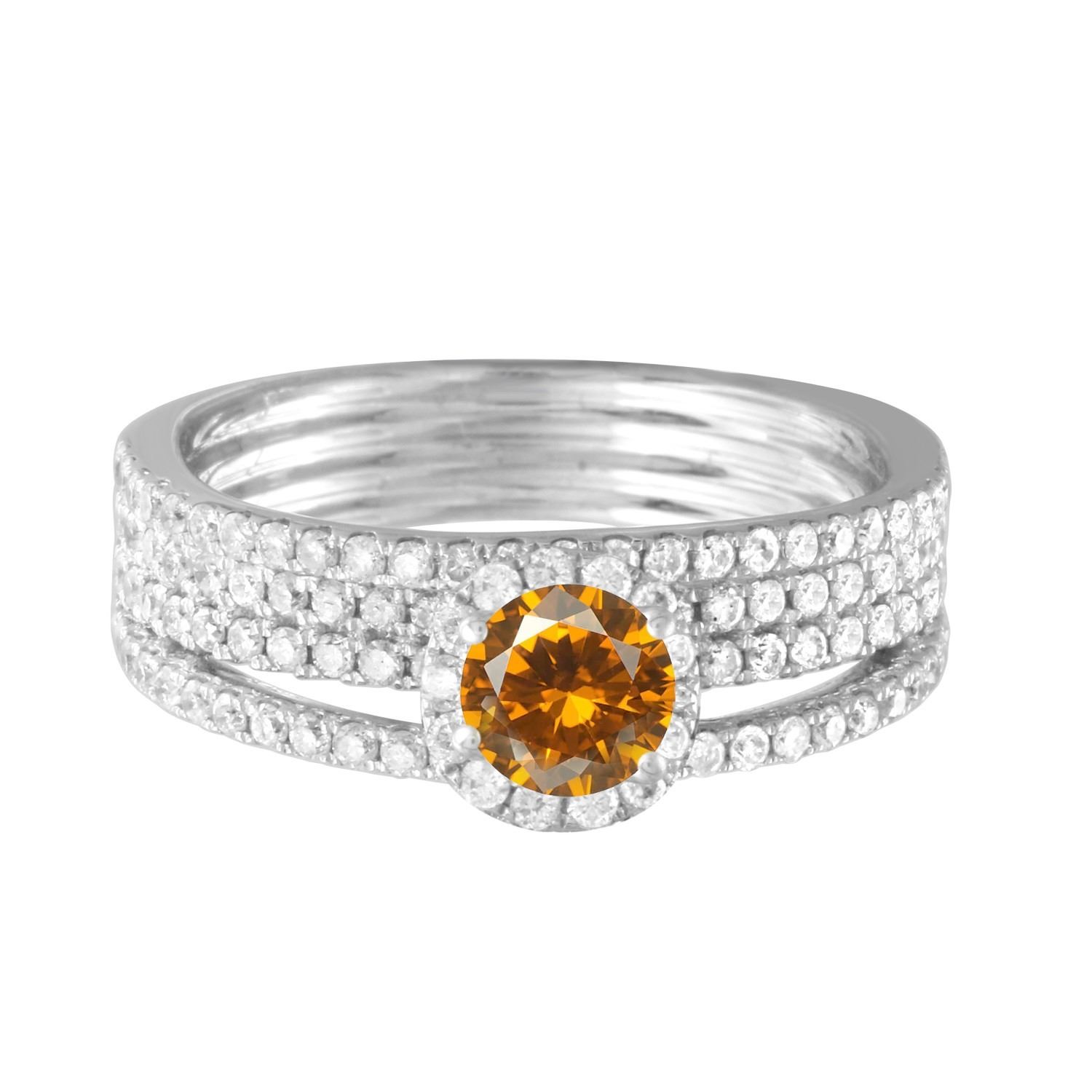 One 14KT White Gold 0.56ct Citrine and Diamond Ring. (1) Citrine stone with a total weight of 0.56cts. (111) Diamonds with a total weight of 0.75cts with a color of H-I and a clarity of SI-2. Total weight of this ring is 4.66 grams. Ring size is 6.5.