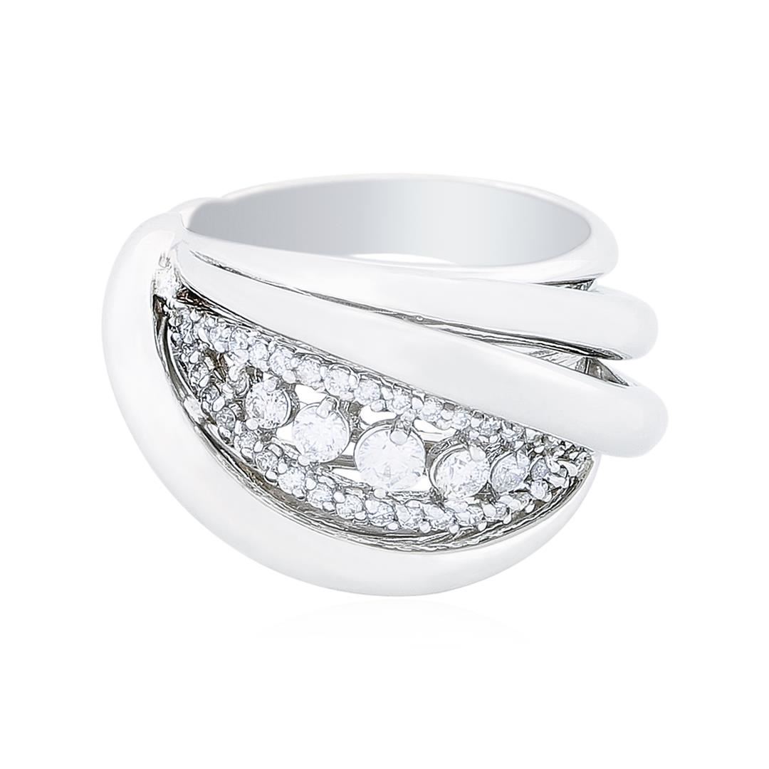 One electronically tested 14KT white gold ladies cast diamond ring with a bright polish finish. Identified with markings of "14K". Condition is new. Containing: Four prong set round brilliant cut diamonds, measuring 3.00. - 2.00. x 1.50mm (depth est.) approximate total weight of 4 Stones = 0.20ct. Clarity: SI-1 to SI-2. Color: G - H, Cut is Good. Forty-One prong set round brilliant cut diamonds, measuring 1.30 - 1.20 x 0.75mm (depth est.) approximate total weight of 41 Stones = 0.37ct. Clarity: SI-2 to I-1. Color: H - I, Cut is Good. All diamonds are graded in the mounting, unless otherwise stated. Total Weight of Diamonds 0.57ct. Total Weight of Ring 8.80 grams. GGL Appraised at $3,375.00.