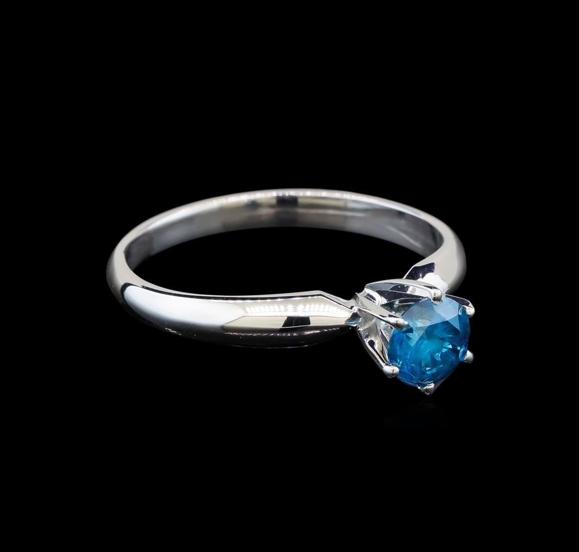 One electronically tested 14KT white gold ladies cast diamond solitaire ring with a knife edge shank with a bright polish finish. Identified with markings of "14K". Condition is new. Containing: One prong set round brilliant cut diamond, measuring 5.40 - 5.40 x 3.51mm (depth est.) exact weight 0.57ct. Clarity: I-2, Cut is Good. Color of the stone has been treated. Diamonds are graded in the mounting, unless otherwise stated. Total Weight of Diamonds 0.57ct. Total Weight of Solitaire Ring 2.40 grams. GGL Appraised at $1,200.00.