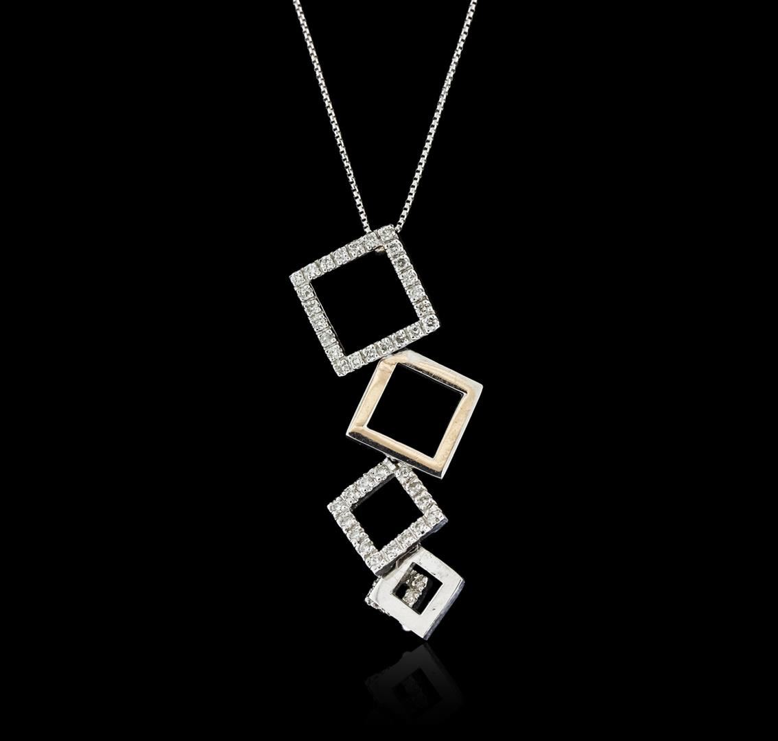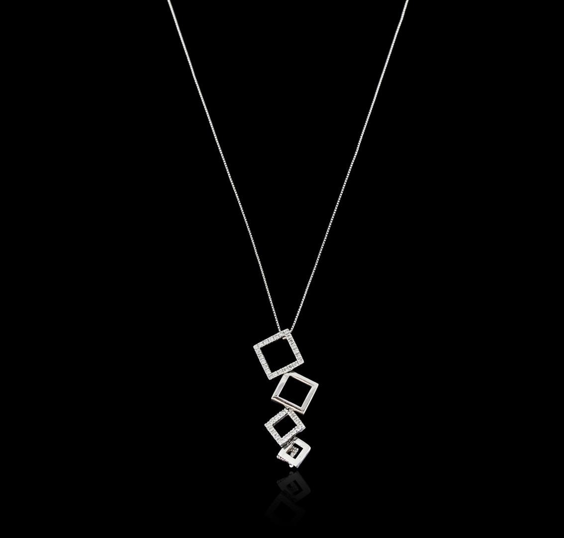 One pendant with chain featuring: 14KT white gold weighing 5.20 grams containing pave set round diamonds with a total weight of 0.58ct.