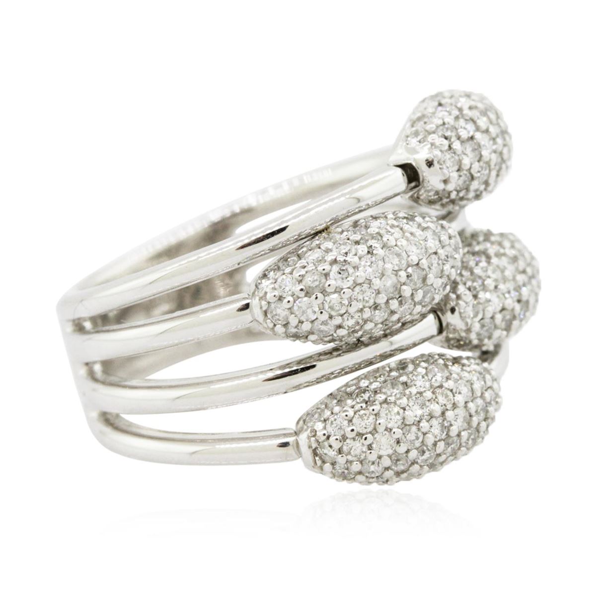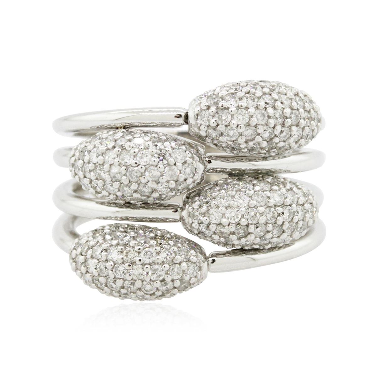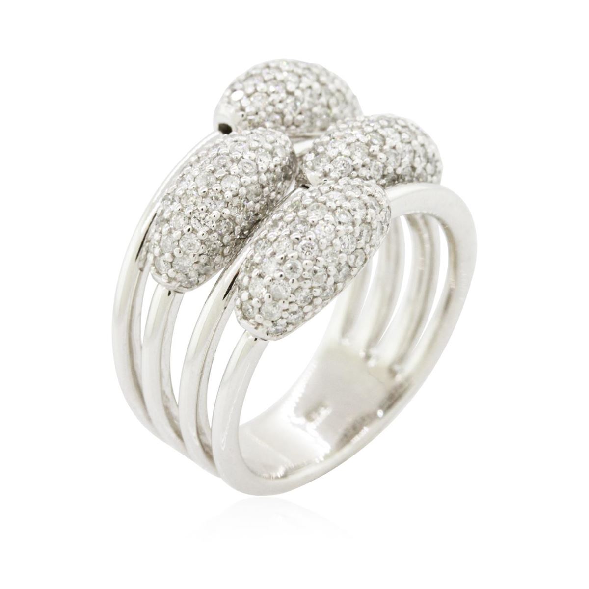 One electronically tested 14KT white gold ladies combination cast & assembled diamond ring with a bright polish finish. Identified with markings of "585". Condition is new. Containing: One Hundred Sixty-Four bead set round brilliant cut diamonds, measuring 1.00 - 1.00 x 0.60mm (depth est.) approximate total weight of 164 Stones = 0.59ct. Clarity: I-1 to I-2. Color: H - I, Cut is Good. All diamonds are graded in the mounting, unless otherwise stated. Total Weight of Diamonds 0.59ct. Total Weight of Ring 9.10 grams. GGL Appraised at $4,965.00.