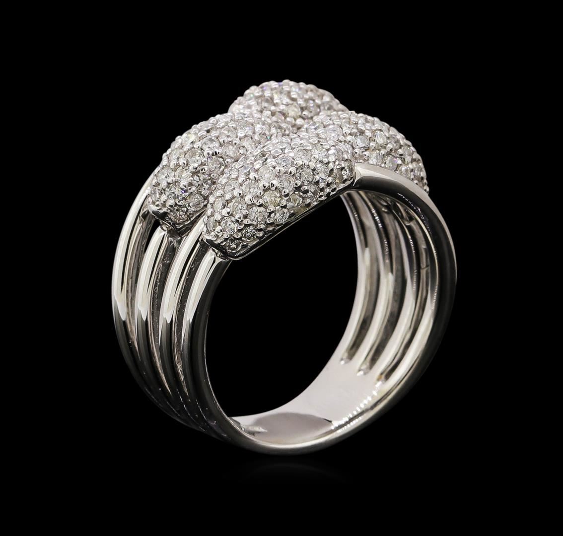 One electronically tested 14KT white gold ladies combination cast & assembled diamond ring with a bright polish finish. Identified with markings of "585". Condition is new. Containing: One Hundred Sixty-Four bead set round brilliant cut diamonds, measuring 1.00 - 1.00 x 0.60mm (depth est.) approximate total weight of 164 Stones = 0.59ct. Clarity: I-1 to I-2. Color: H - I, Cut is Good. All diamonds are graded in the mounting, unless otherwise stated. Total Weight of Diamonds 0.59ct. Total Weight of Ring 9.10 grams. GGL Appraised.