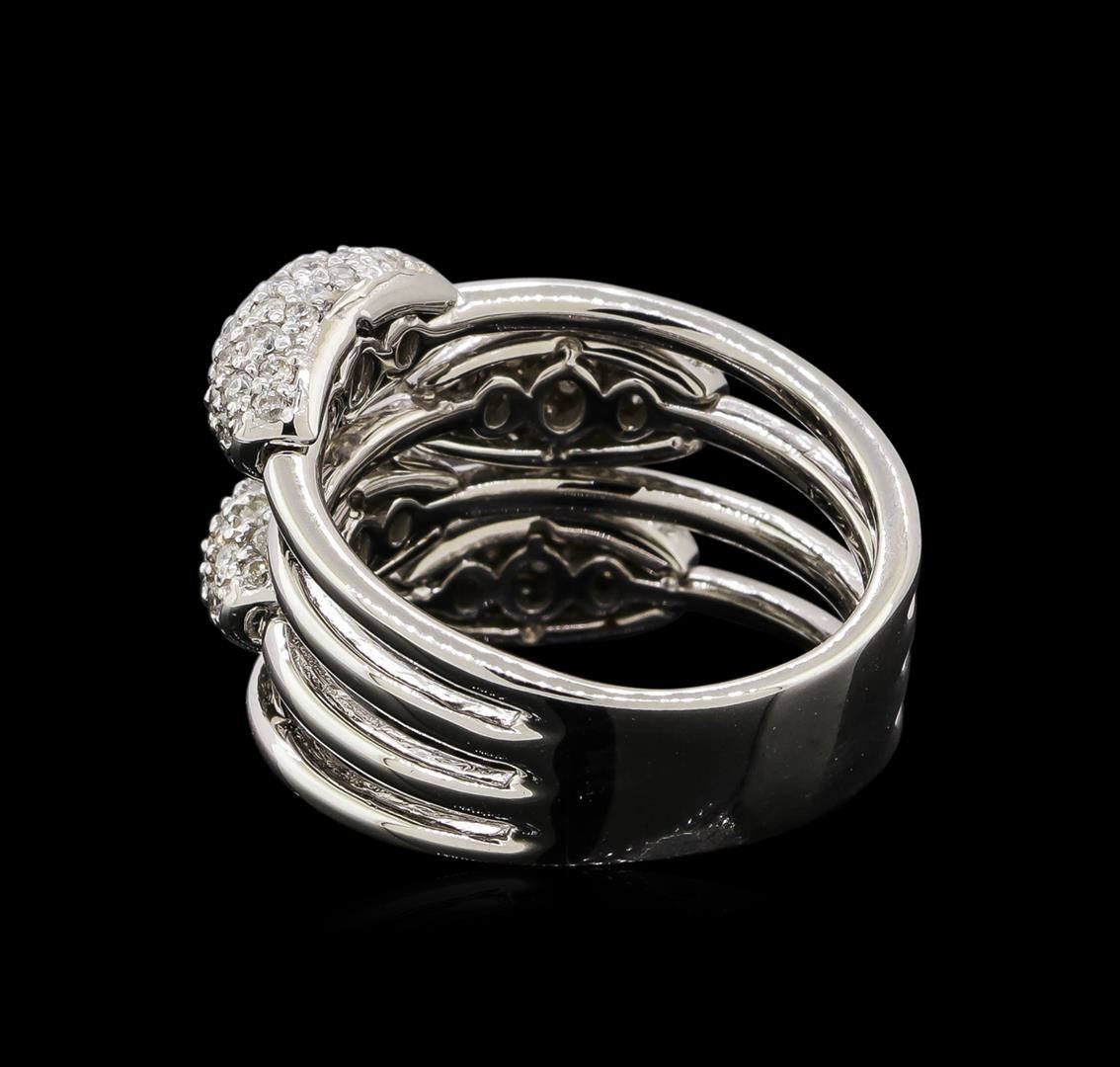 One electronically tested 14KT white gold ladies combination cast & assembled diamond ring with a bright polish finish. Identified with markings of "585". Condition is new. Containing: One Hundred Sixty-Four bead set round brilliant cut diamonds, measuring 1.00 - 1.00 x 0.60mm (depth est.) approximate total weight of 164 Stones = 0.59ct. Clarity: I-1 to I-2. Color: H - I, Cut is Good. All diamonds are graded in the mounting, unless otherwise stated. Total Weight of Diamonds 0.59ct. Total Weight of Ring 9.10 grams. GGL Appraised.