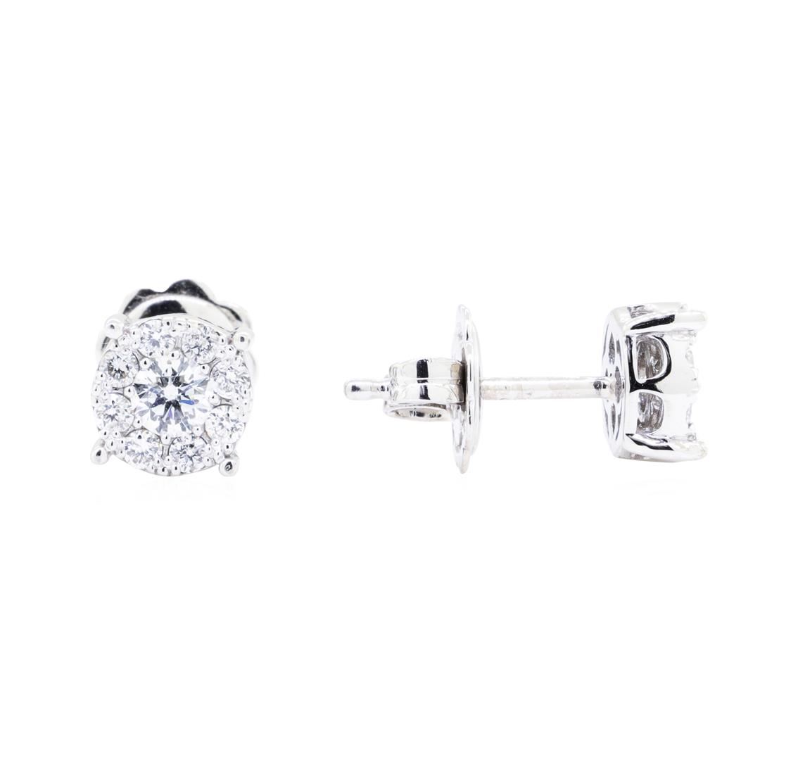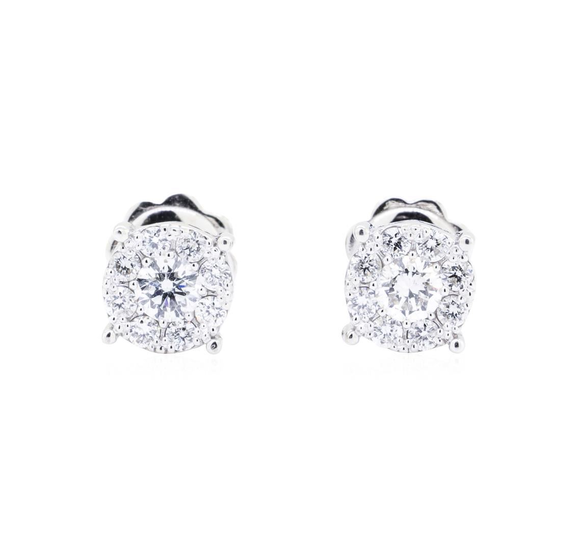 One pair of earrings with frictions posts and backs featuring: 14KT white gold weighing 2.1 grams containing diamonds weighing 0.60ctw.