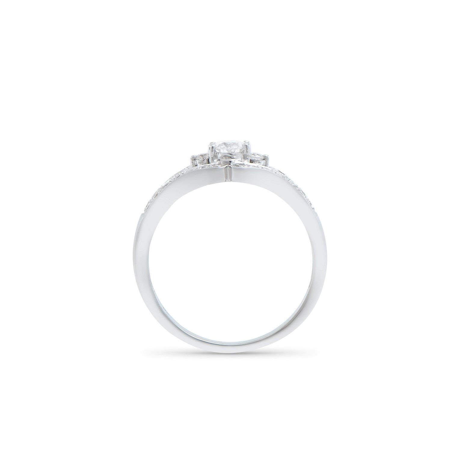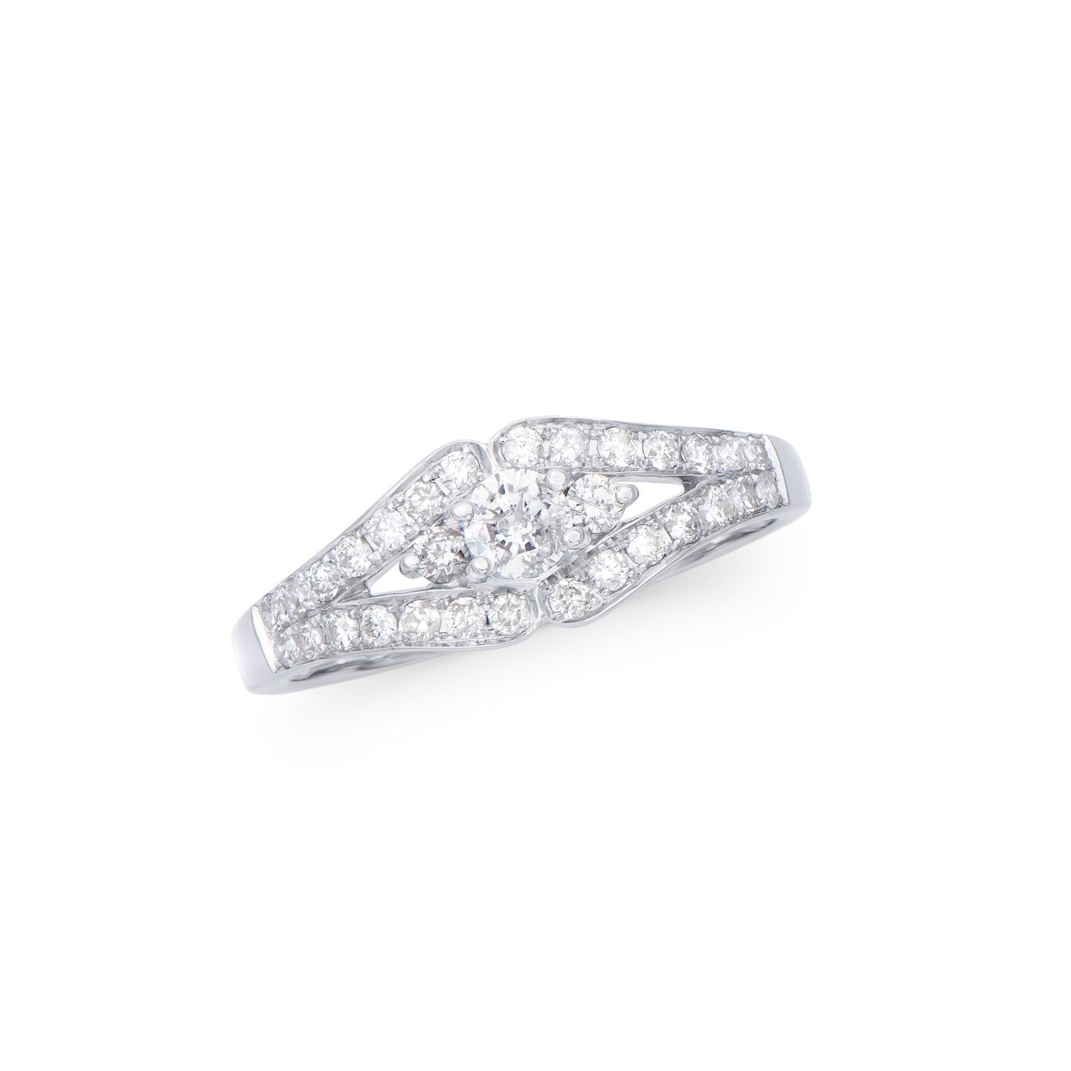 (1) round Diamond with a total weight of 0.22cts with a color of H-I and clarity of I1-I2. (2) round Diamonds with a total weight of 0.06cts with a color of H-I and clarity of I1-I2. (28) round Diamonds with a total weight of 0.32cts with a color of H-I and clarity of I1-I2. Total weight of this ring is 2.51 grams. Ring size is 7.5.