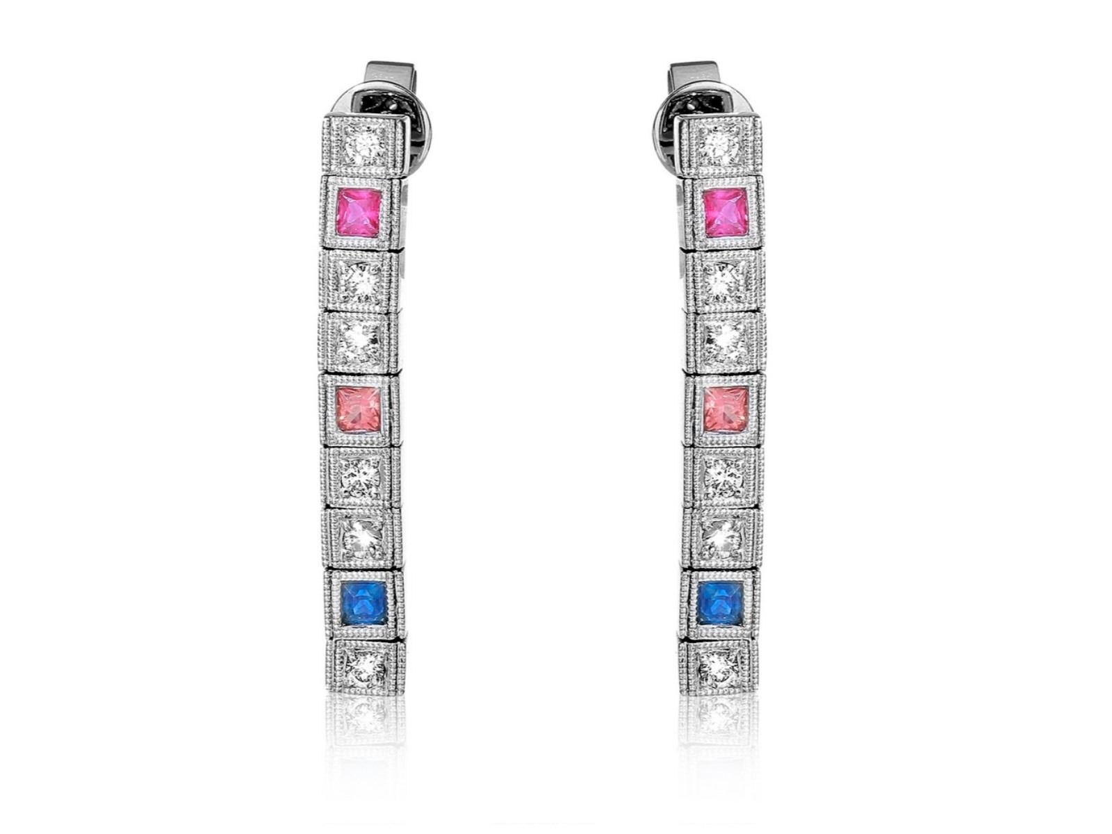 14KT White Gold 0.60ctw Multi Color Sapphire and Diamond Earrings