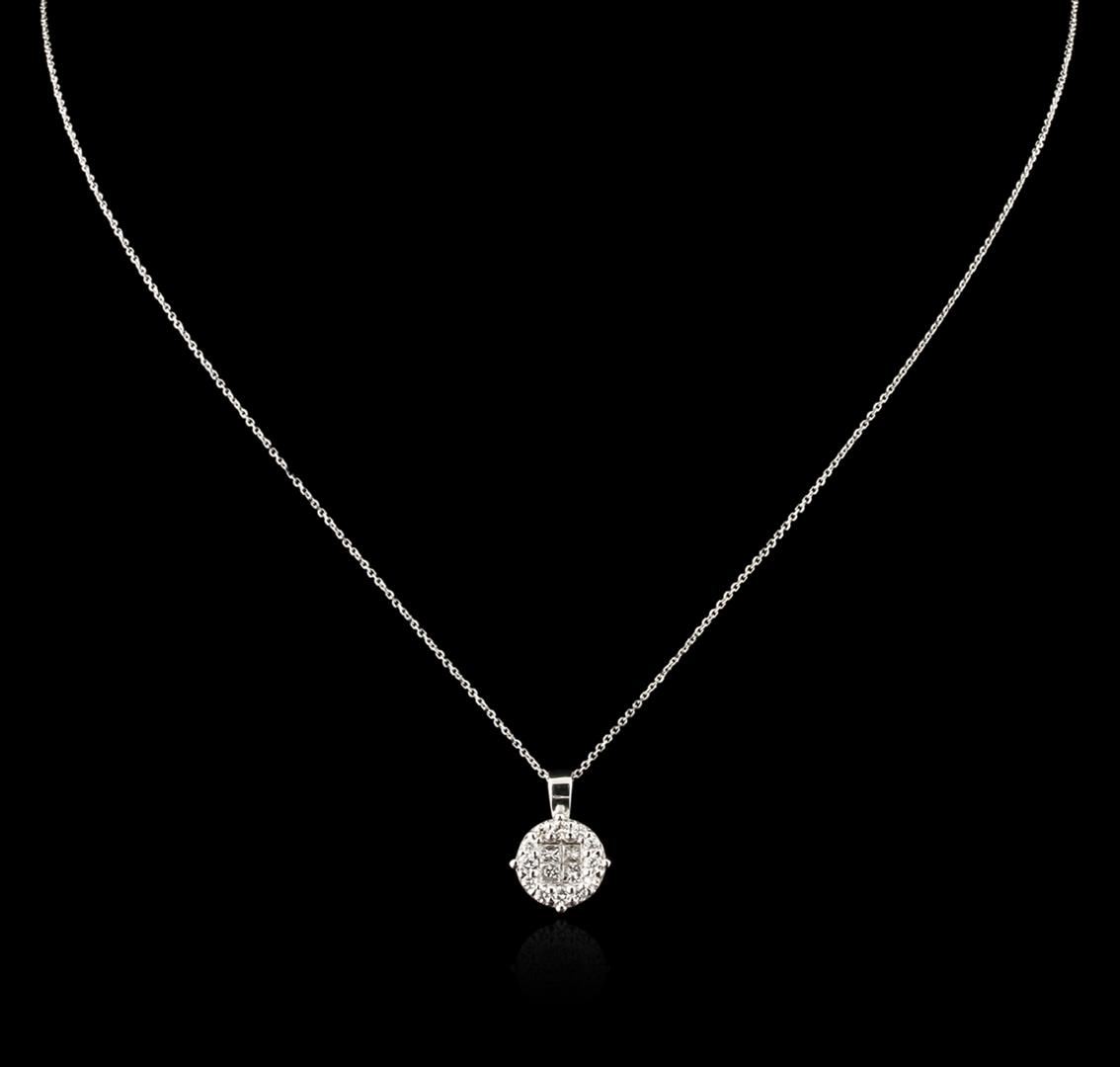 One pendant with chain featuring: 14KT white gold weighing 2.60 grams containing diamonds with a total weight of 0.61ct.