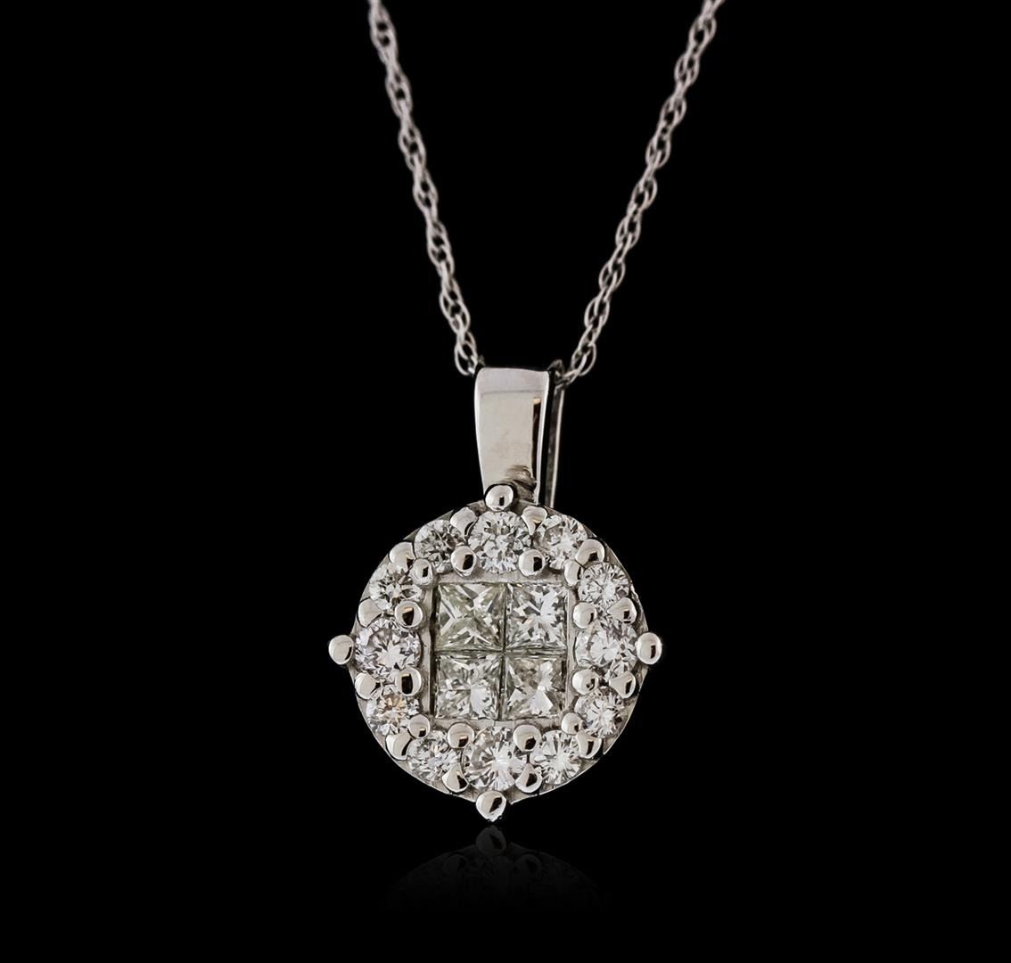 One pendant with chain featuring: 14KT white gold weighing 2.5 grams containing diamonds weighing a total of 0.61ct.