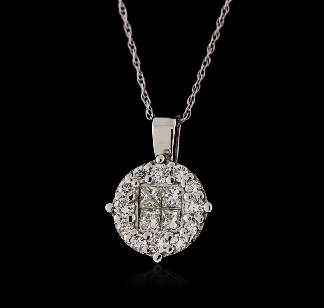 One pendant with chain featuring: 14KT white gold weighing 2.5 grams containing diamonds weighing a total of 0.61ct.