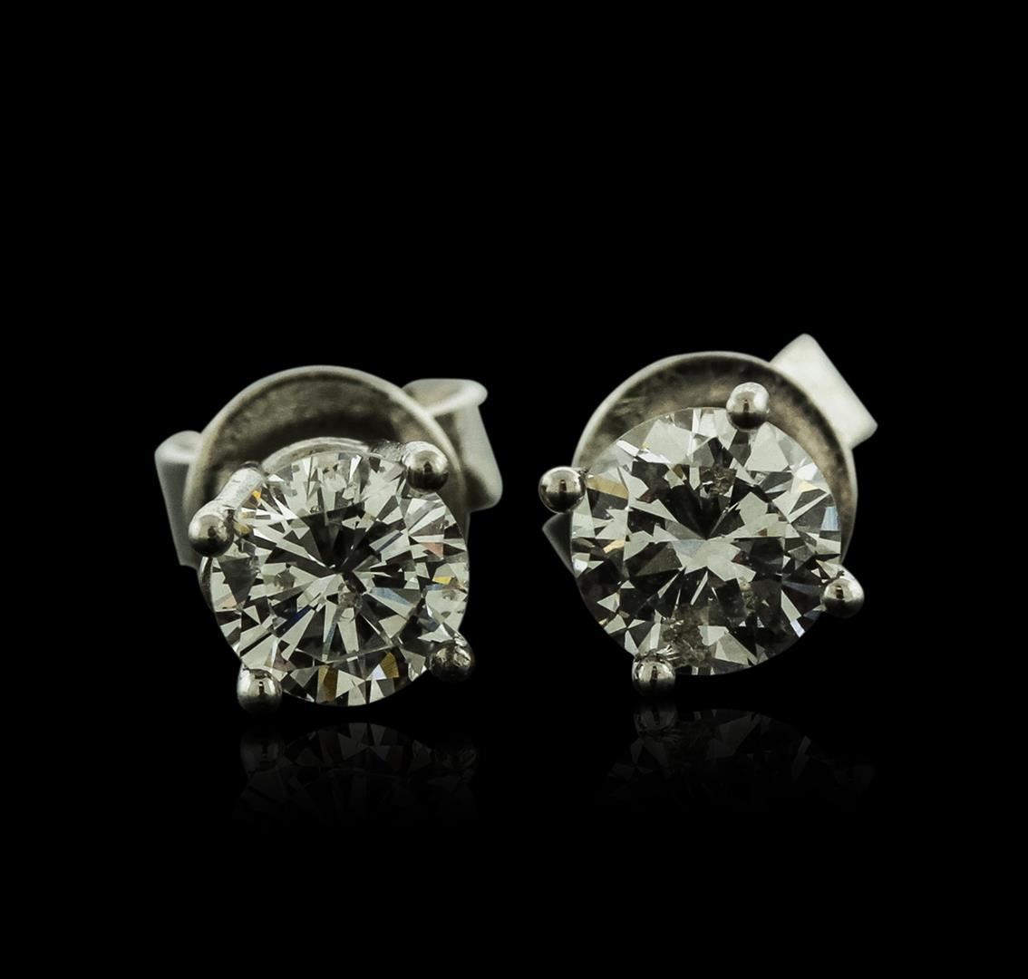 One pair of stud earrings featuring: 14KT white gold weighing 1.00 grams containing diamonds with a total weight of 0.63ct.