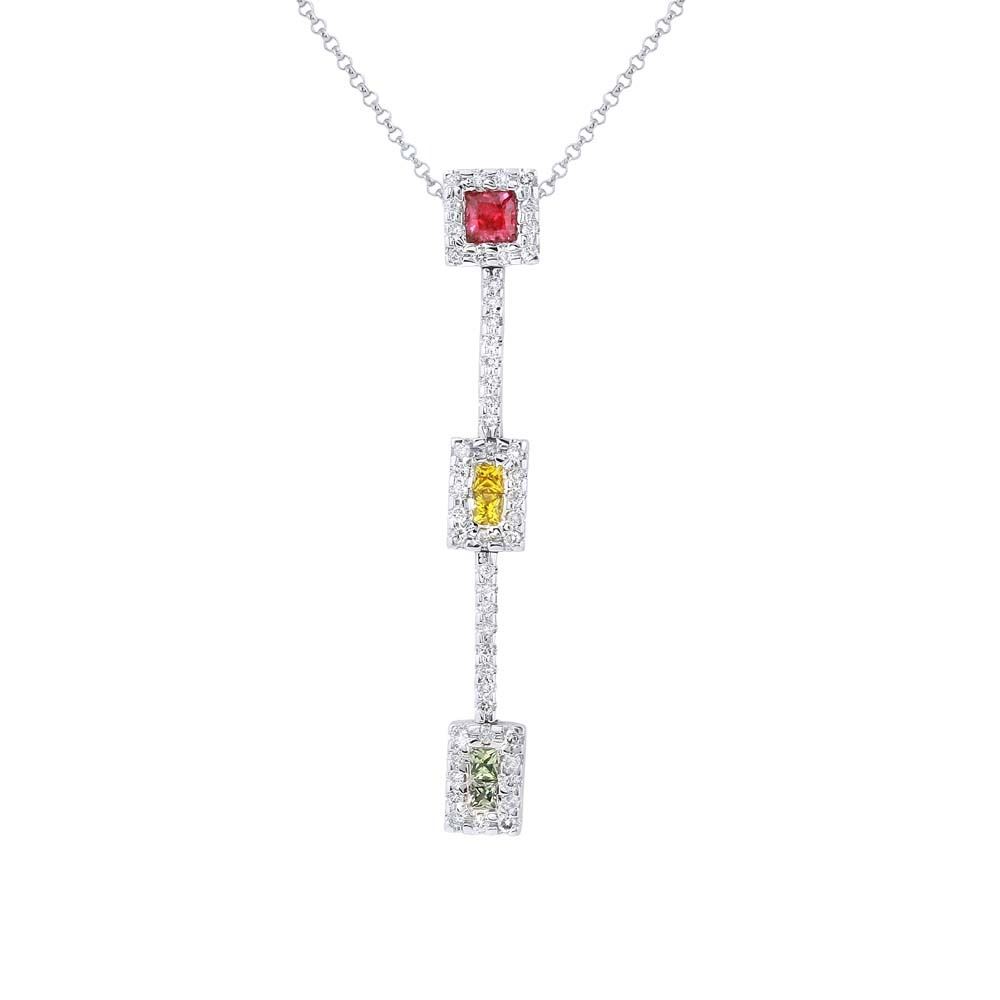 14KT White Gold 0.65ctw Multi Color Sapphire and Diamond Pendant with Chain