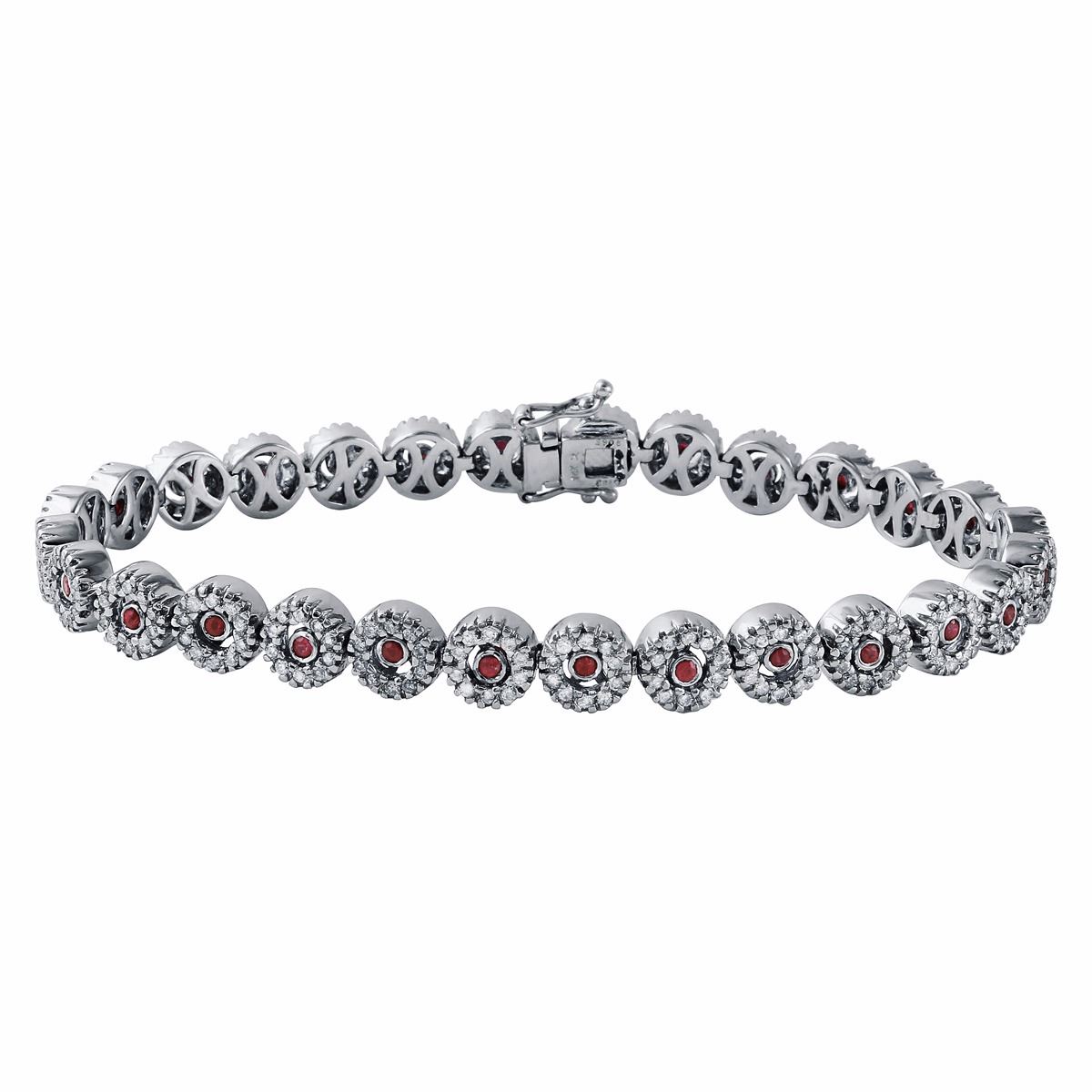 One 14KT White Gold 0.65ctw Ruby and Diamond Bracelet. (28) Rubies with a total weight of 0.65cts. (280) Diamonds with a total weight of 1.83cts. Length of this bracelet is 7 inches. The total weight of this bracelet is 19.97 grams.