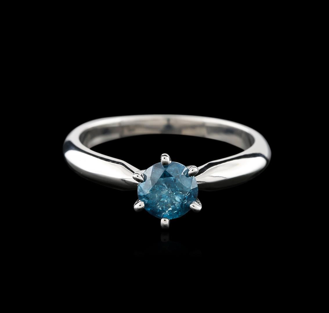 One electronically tested 14KT white gold ladies cast diamond solitaire ring with a knife edge shank with a bright polish finish. Identified with markings of "14K". Condition is new. Containing: One prong set round brilliant cut diamond, measuring 5.60 - 5.60 x 3.65mm (depth est.) exact weight 0.67ct. Clarity: I-3, Cut is Good. Color of the stone has been treated. Diamonds are graded in the mounting, unless otherwise stated. Total Weight of Diamonds 0.67ct. Total Weight of Solitaire Ring 2.80 grams. GGL Appraised at $1,235.00.