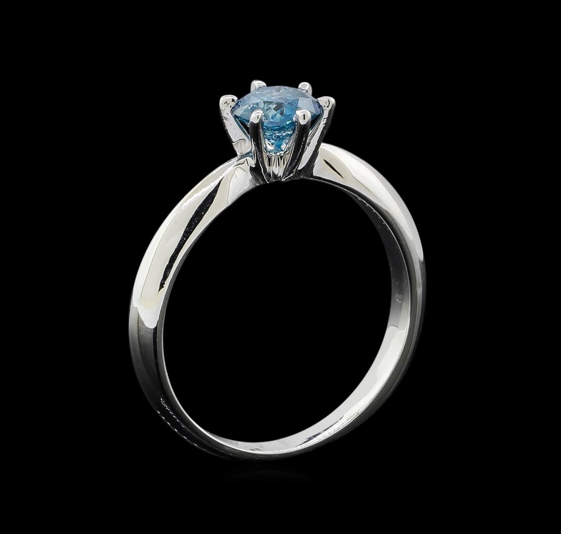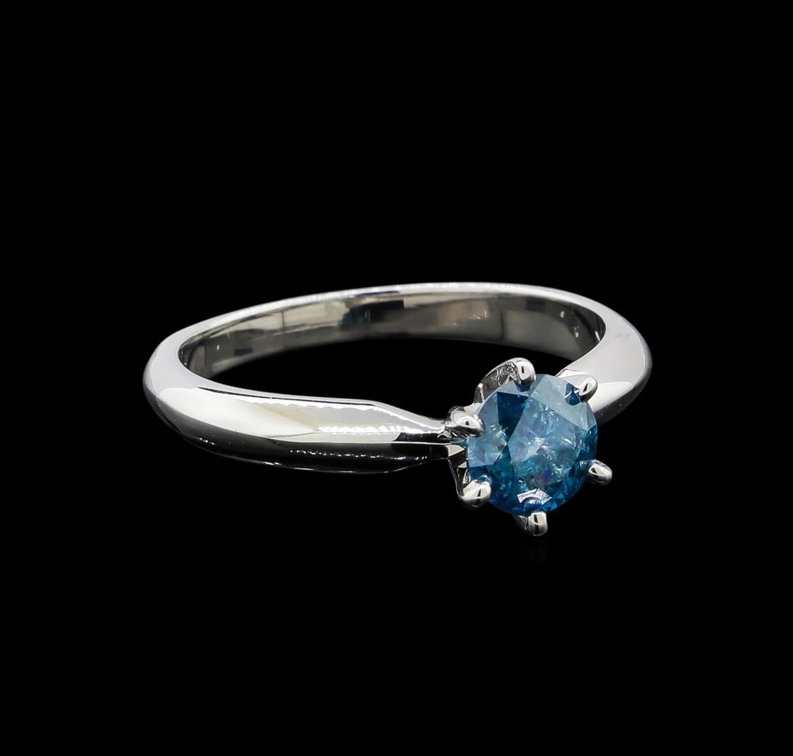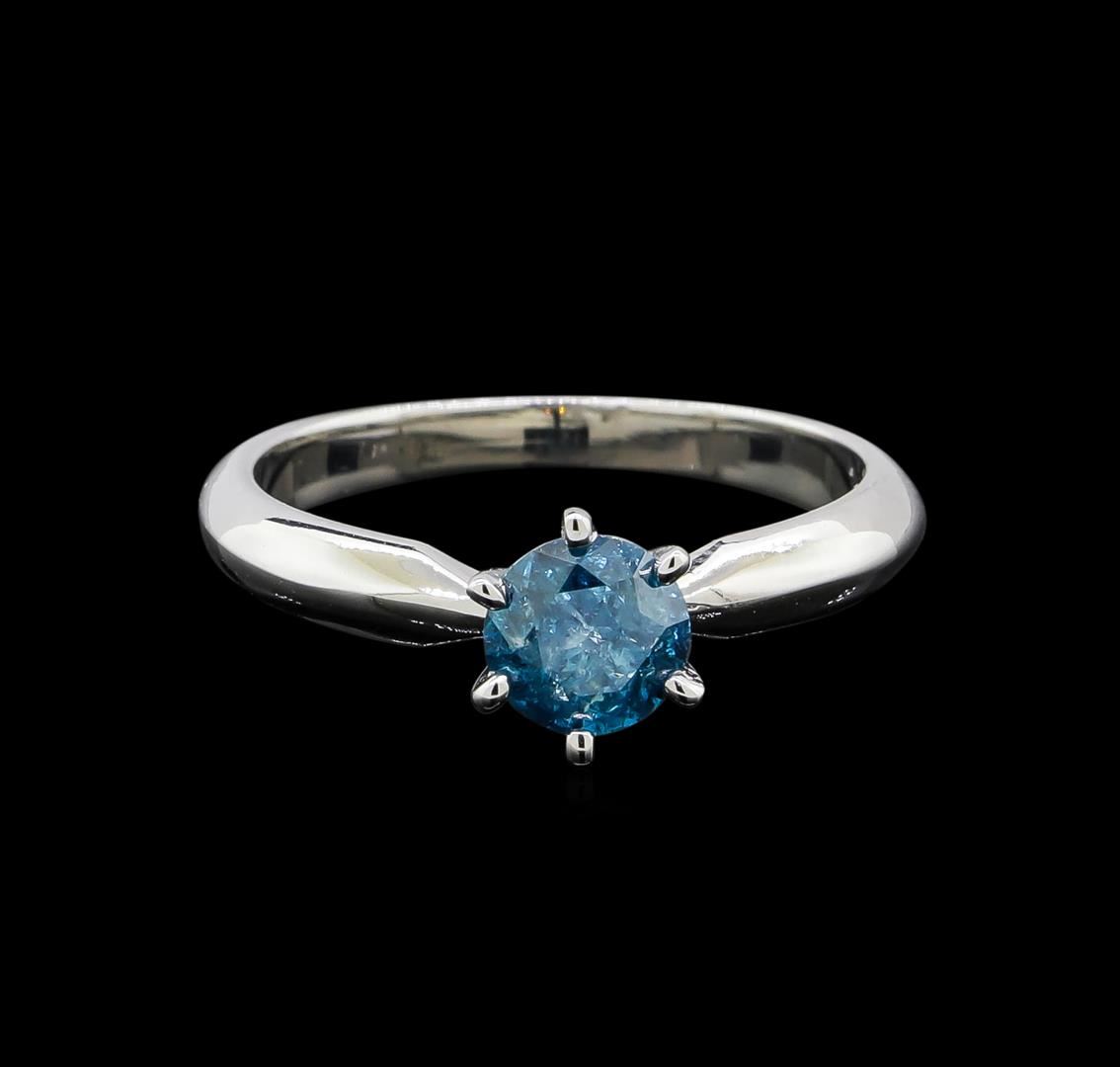 One electronically tested 14KT white gold ladies cast diamond solitaire ring with a knife edge shank with a bright polish finish. Identified with markings of "14K". Condition is new. Containing: One prong set round brilliant cut diamond, measuring 5.60 - 5.60 x 3.65mm (depth est.) exact weight 0.67ct. Clarity: I-3, Cut is Good. Color of the stone has been treated. Diamonds are graded in the mounting, unless otherwise stated. Total Weight of Diamonds 0.67ct. Total Weight of Solitaire Ring 2.80 grams. GGL Appraised at $1,235.00.