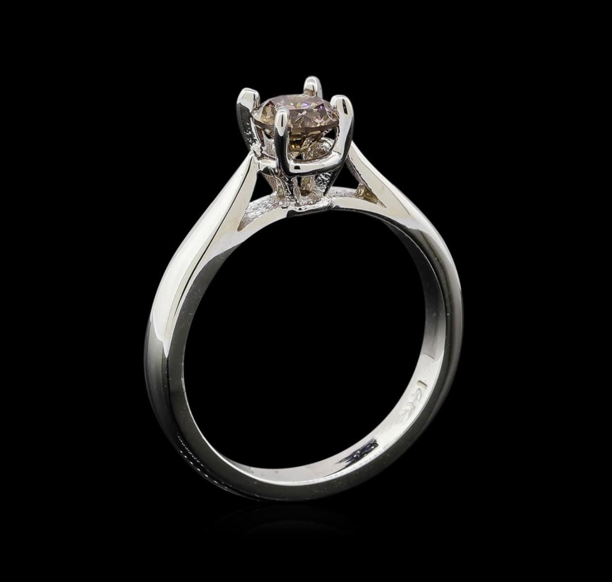 One electronically tested 14KT white gold ladies cast diamond solitaire ring with a flat shank with rounded edges with a bright polish finish. Identified with markings of "14K". Condition is new. Containing: One prong set round brilliant cut diamond, measuring 5.45 - 5.45 x 3.27mm (depth est.) exact weight 0.67ct. Clarity: I-1, Cut is Good. Diamonds are graded in the mounting, unless otherwise stated. Total Weight of Diamonds 0.67ct. Total Weight of Solitaire Ring 3.60 grams. GGL Appraised.