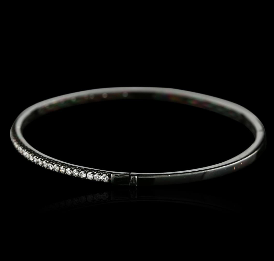 One bangle bracelet featuring: 14KT white gold with black rhodium weighing 6.00 grams containing diamonds with a total weight of 0.68ct.
