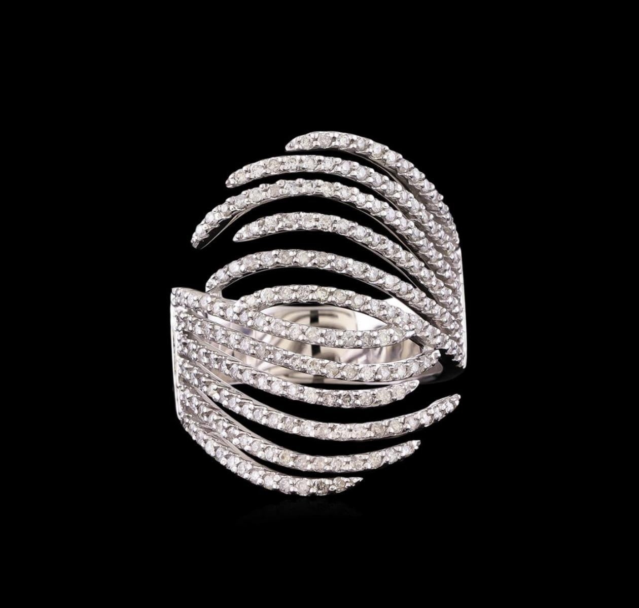 One electronically tested 14KT white gold ladies cast diamond ring with a bright polish finish. Identified with markings of "585". Condition is new. Containing: One Hundred Ninety prong set round brilliant cut diamonds, measuring 1.00 - 1.00 x 0.60mm (depth est.) approximate total weight of 190 Stones = 0.68ct. Clarity: SI-2 to I-1. Color: I - J, Cut is Good. All diamonds are graded in the mounting, unless otherwise stated. Total Weight of Diamonds 0.68ct. Total Weight of Ring 9.20 grams. GGL Appraised.