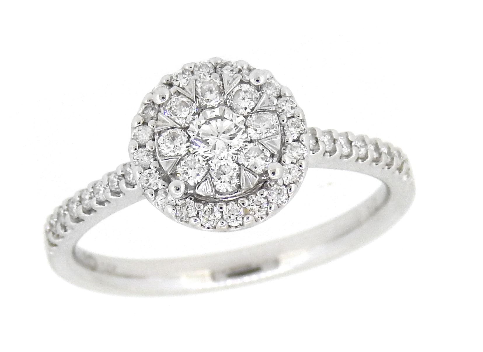 One 14KT White Gold 0.68ctw Diamond Ring. (45) Diamonds with a total weight of 0.68cts with a color of F-G and clarity of VS-2 to SI-1. Total weight of this ring is 2.8 grams.
