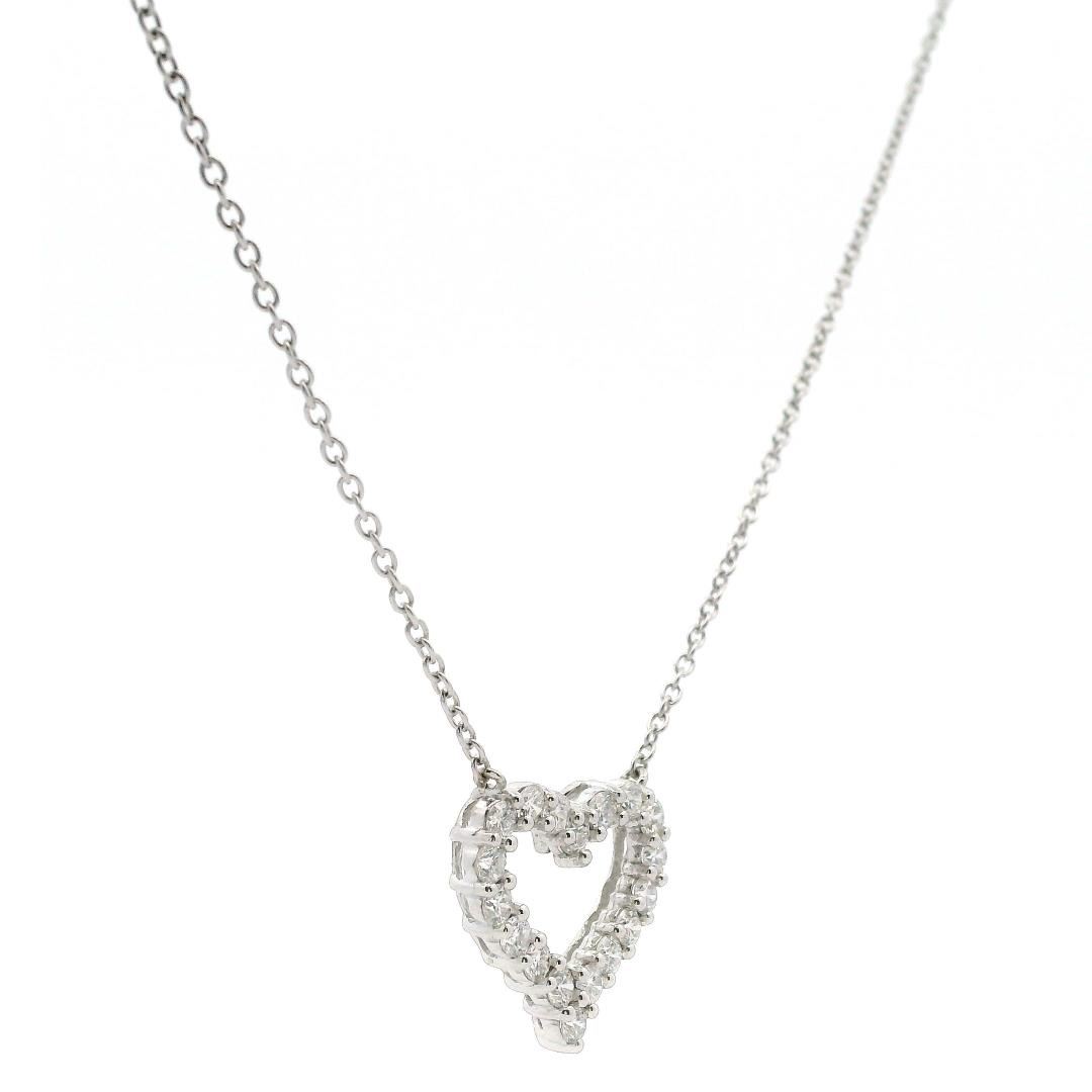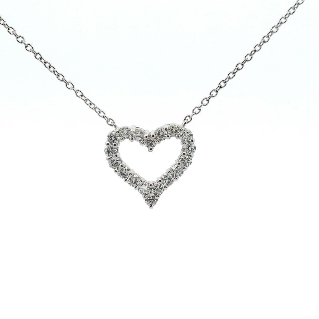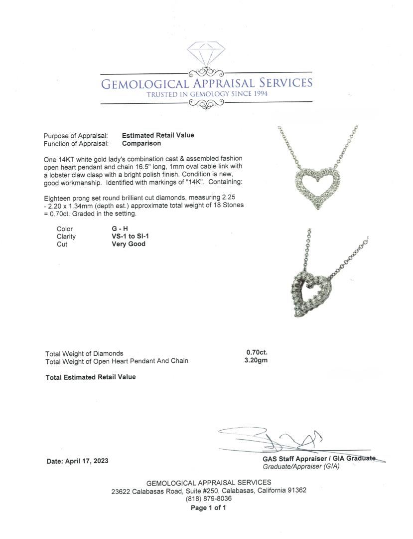 14KT White Gold 0.70 ctw Diamond Open Heart Pendant with Chain