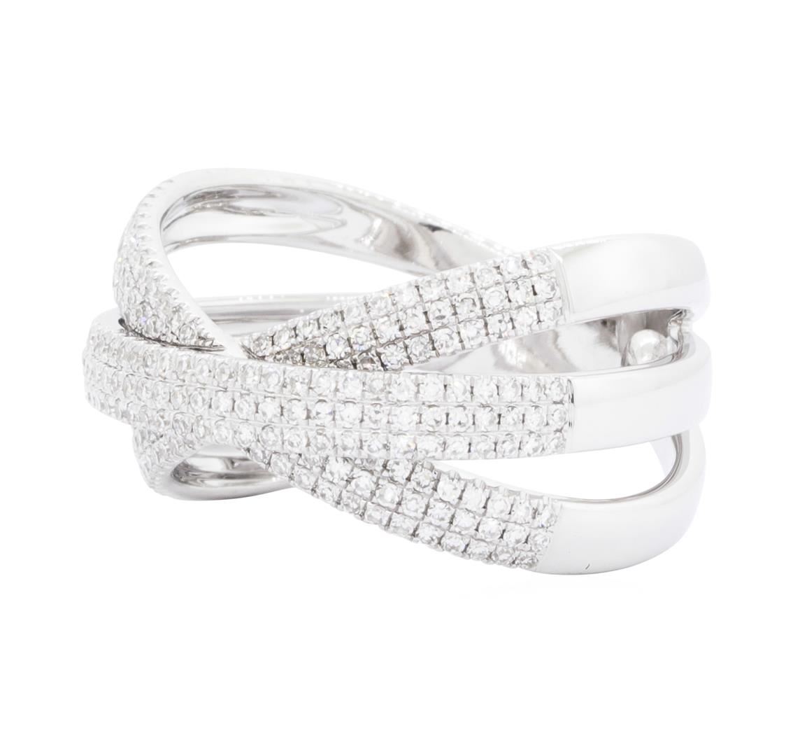 One ring featuring: 14KT white gold weighing 5.8 grams containing diamonds weighing 0.70ctw. The ring is a size 7 (with sizing balls).
